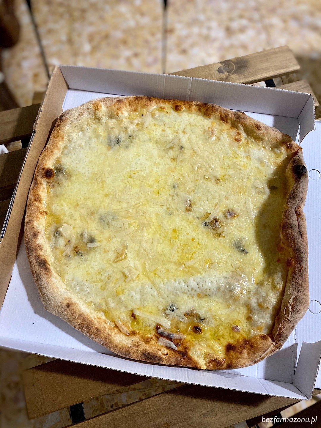 Do domu donieśliśmy serową z mozzarellą, gorgonzolą, emmentalem i scaglie di grana z okrutną ilością oliwy (10,50 Euro). Ta ciężka i wielka (około 45-50 cm obwodu) pizza spokojnie wystarczy dla dwóch osób. Jest niezła, ale przez super mocną ilość sera bardzo ciężkostrawna.