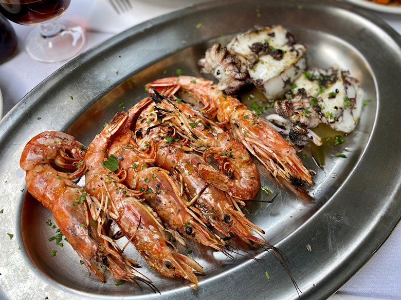 W Katanii odwiedziliśmy takich miejscówek kilka. Pierwszą wartą wspomnienia jest pełna lokalsów Trattoria del Cavaliere. Z wypełnionej po brzegi lodówki poprosiliśmy o grillowane krewetki (1kg – 30 Euro) oraz mątwę (1kg – 40 Euro) również z ognia. Za pierwsze wyszło 10 Euro, za głowonoga 12 Euro.