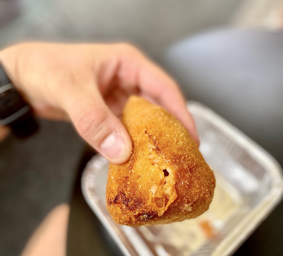 Istotnym smakołykiem konsumowanym w każdej części wyspy jest Arancina (lub Arancino). Pierwszą nazwę spotkacie w Palermo, a drugą w Katani. W poszczególnych rejonach różnią się one od siebie również kształtem. Na zachodzie widywałem głównie walcowate, na wschodzie zwężające się u góry. Tak czy siak jest to smażona na głębokim oleju ryżowa kulka z chrupiącą „skórką” oraz przeróżnymi vege i mięsnymi wypełnieniami. Próbowałem kilku wersji: między innymi ze szpinakiem i serem, serem i gotowaną szynką jak i al ragu z mięsnym sosem.