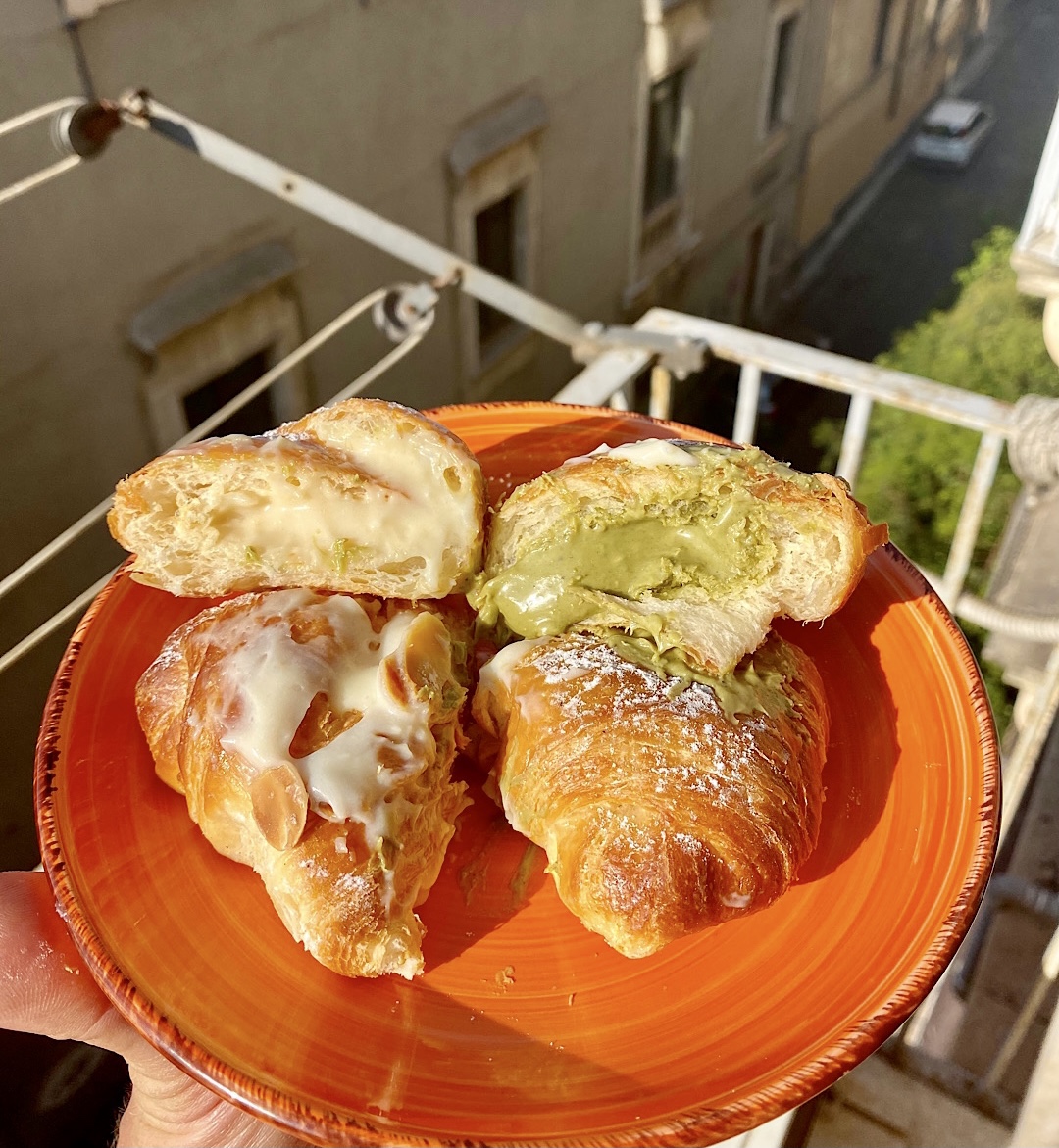 Najlepsze w Katanii jadłem z Pastry Chef z wypełnieniami pistacjowym oraz migdałowym (niecałe jedno Euro).