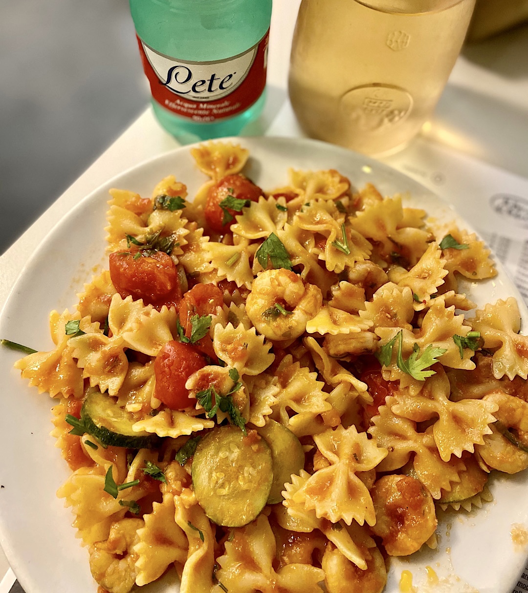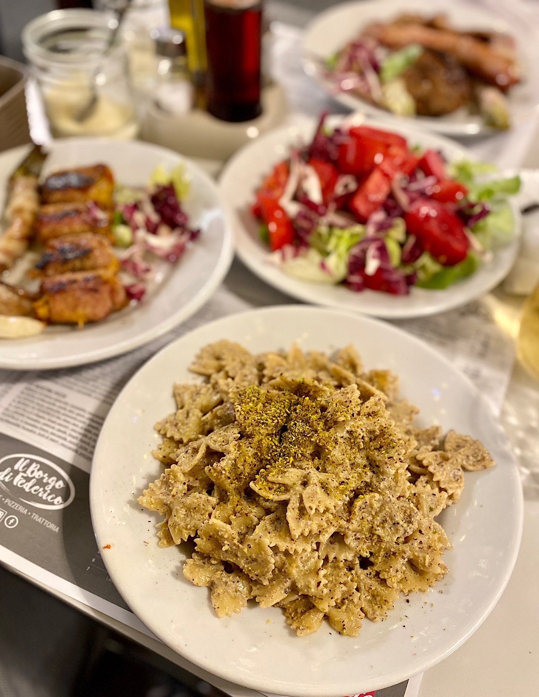 Testowaliśmy farfalle z krewetkami z cukinią (6,50 Euro) oraz farfalle pistacjowe (6 Euro)…