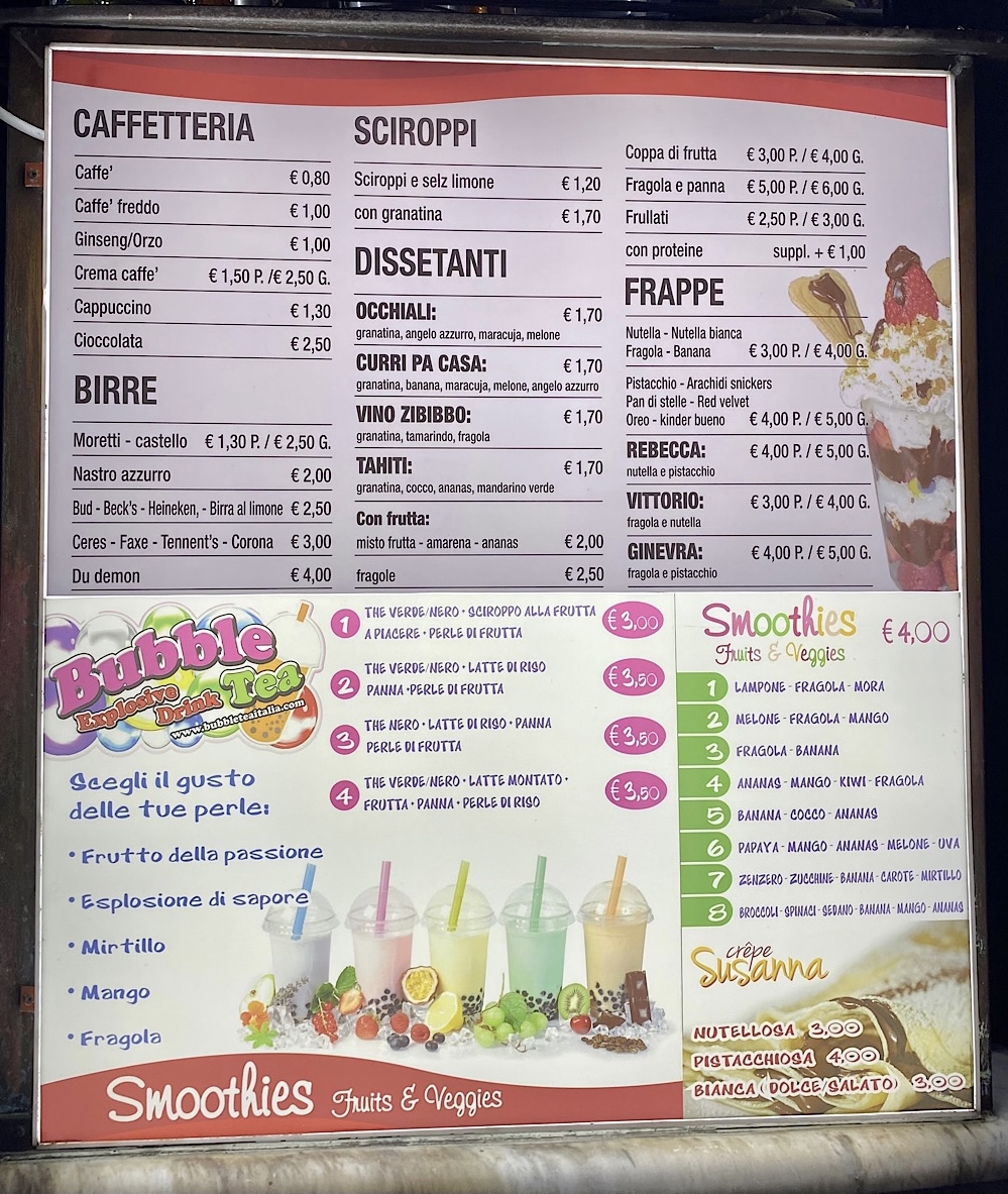 To co jeszcze zasługuje na wspomnienie, a co we Włoszech jest niemalże niespotykane to brak obowiązkowego coperto. No i darmowa woda w karafce oraz ceny kieliszków win startujące już od 2 Euro! BB polecam bardzo, bardzo mocno.