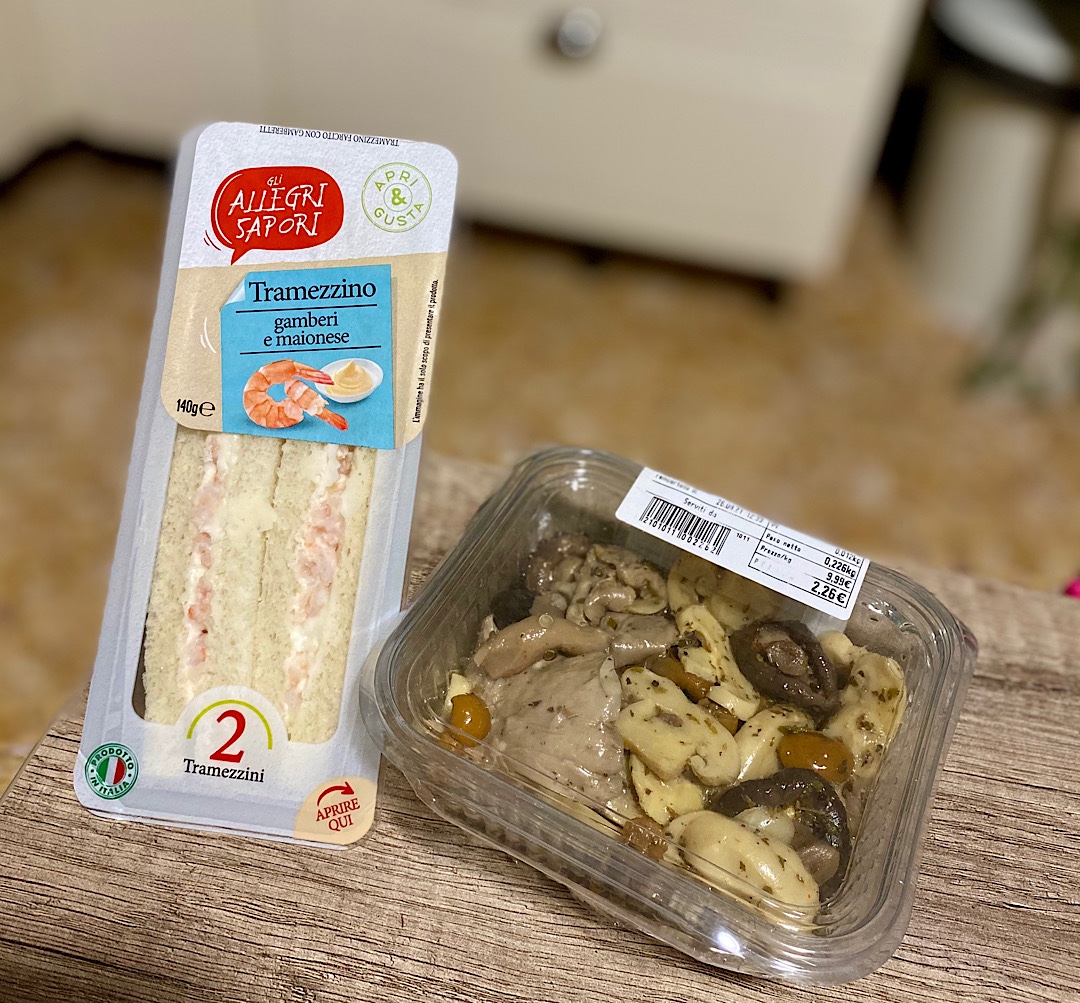 Ah i te sklepowe tramezzini z krewetkami, albo szynką cotto lub łososiem. One są wyborne! Jeśli dobrze poszukacie, to znajdziecie takie które mają o niebo lepszy skład niż kanapki z polskich stacji benzynowych . No i są oczywiście bez „skórki” – całe takie miękkie. Dobierzcie do nich pudełko marynowanych grzybków i macie idealny zestaw plażowy (tylko nie zapomnijcie o widelcu)