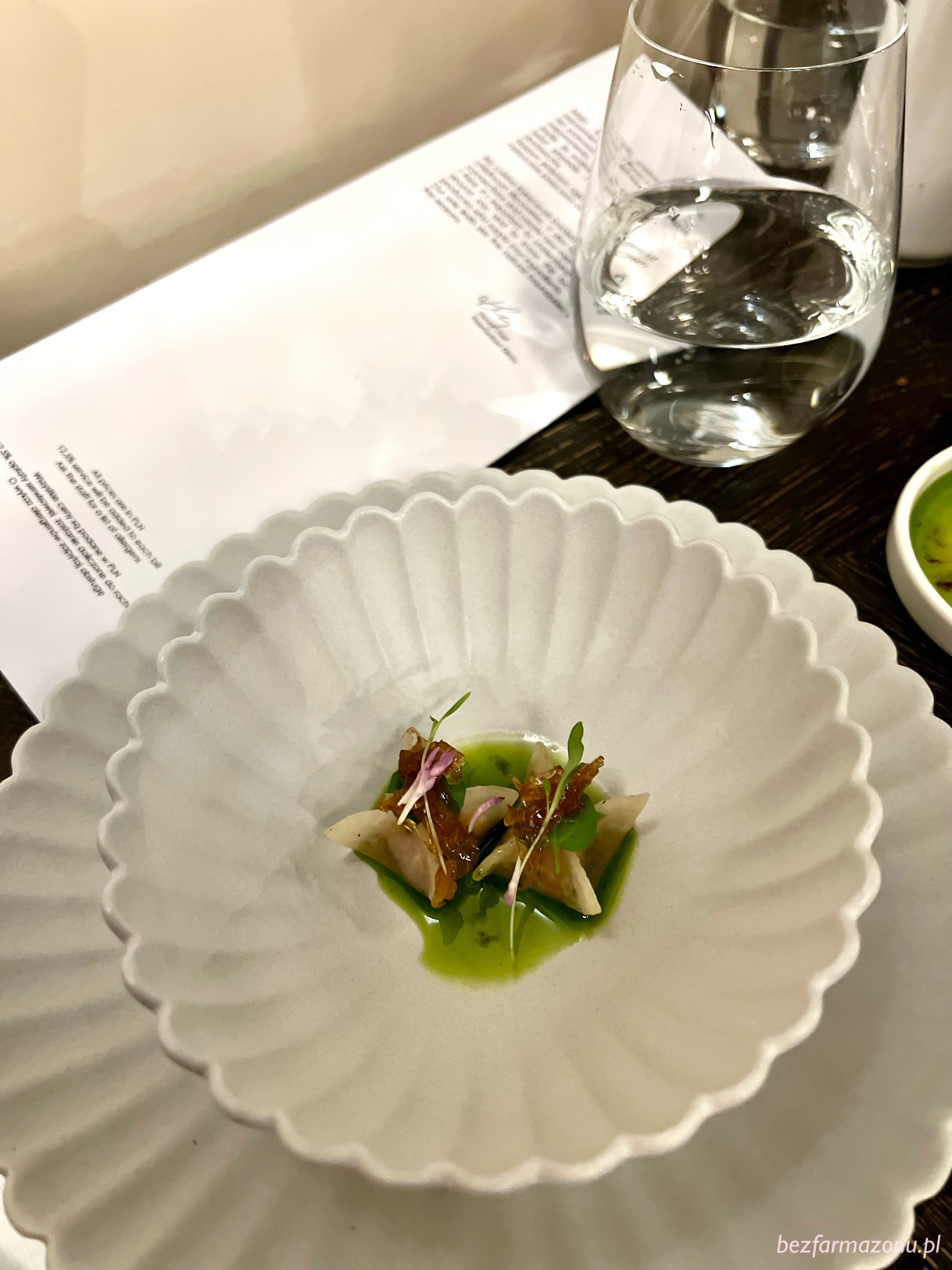 Warto również zaznaczyć iż kilka dni przed wizytą pracownik restauracji dzwoni i pyta o ewentualne alergie, nietolerancje czy inne wykluczenia. Zastosowanie się do wytycznych diety bezglutenowej kolacyjnej towarzyszki oraz przygotowanie wersji degustacyjnej tych samych co u mnie, acz obciętych o gluten dań nie stanowiło dla restauracji żadnego problemu i przez konsumentkę wykonanie zostało ocenione wzorowo.