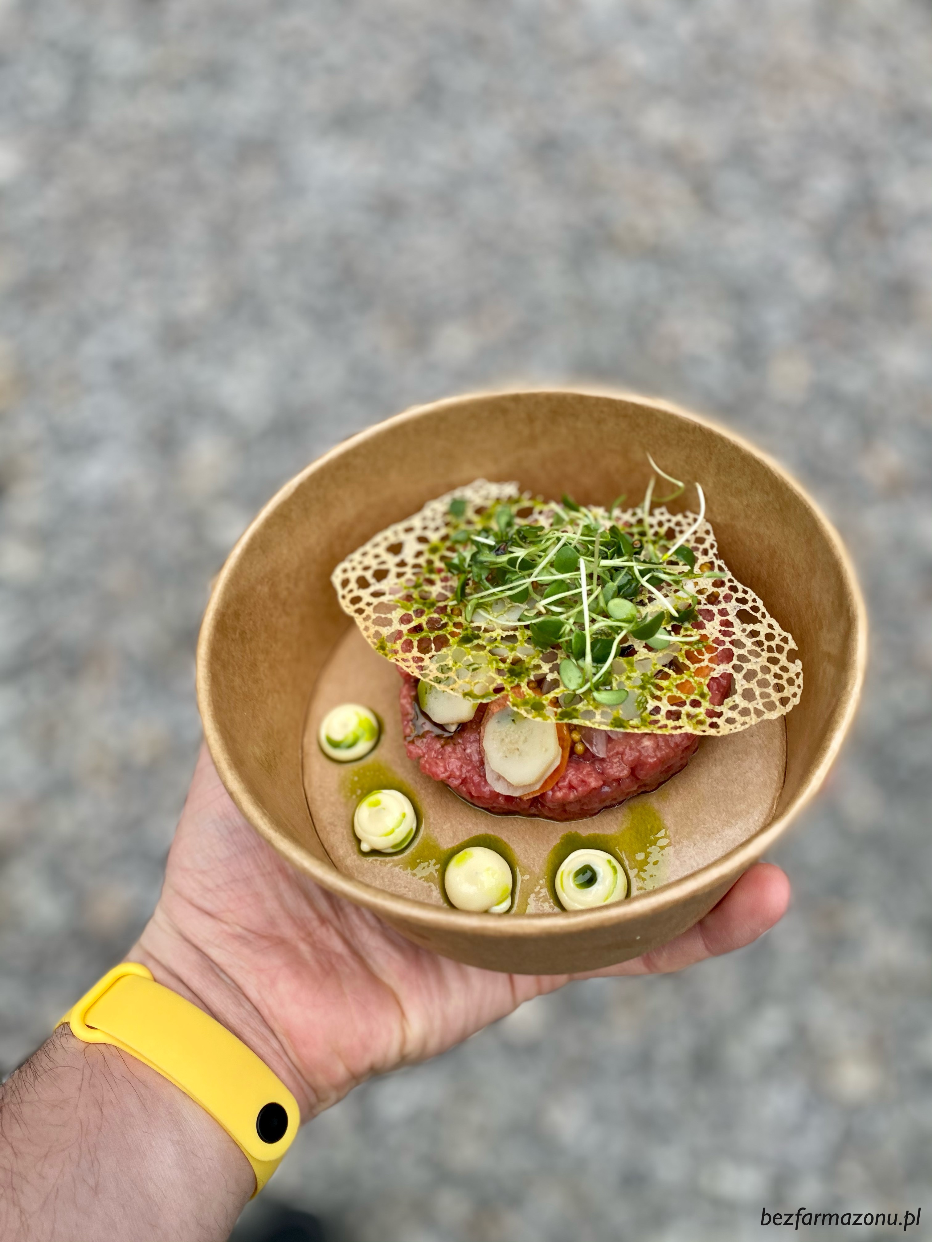 Na początek do czegoś Wam się przyznam. Od wielu lat mam pewne skrzywienie. Jak tylko w karcie dojrzę wołowy tatar to go zamawiam. Nie czytam składu, nie patrzę czy to klasyk czy eksperymentalny wytwór nowych trendów – proszę i martwię lub cieszę chwilę później. W przypadku wycenionego na 31 złotych befsztyka moje odczucia oscylowały zdecydowanie bliżej zadowolenia, aniżeli smutku.