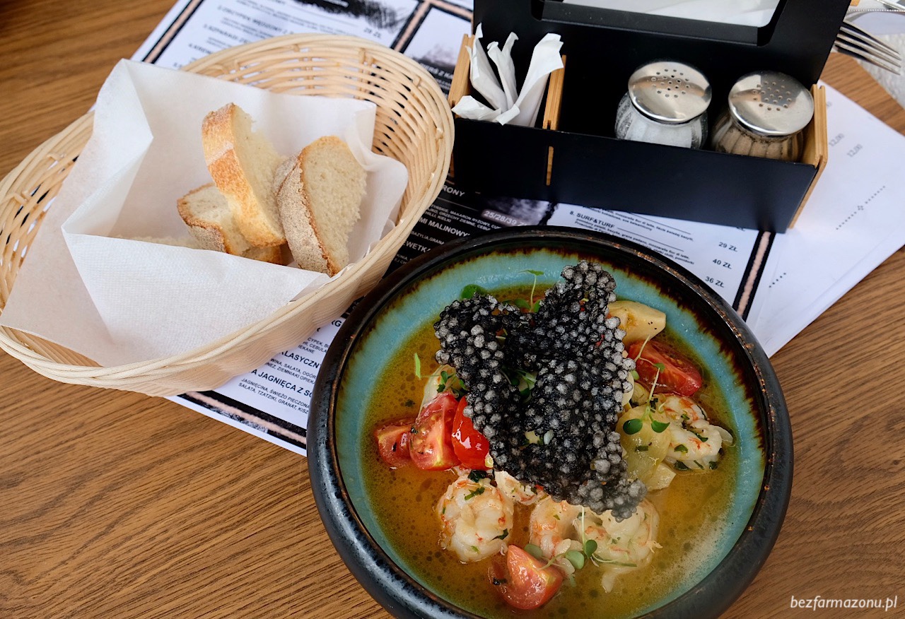 Zapewne znacie to uczucie maczania wypieków w pysznych maślanych sosach? No to nie muszę nic więcej tłumaczyć 🙂 Owoce morza smakowały perfekcyjnie, ale są też wysoko wycenione – 47 PLN. Ich ilość wraz z bułkami jest jednak wystarczająca na zaspokojenie średniego głodu. Według nas to pozycja na granicy przystawek i dań głównych.
