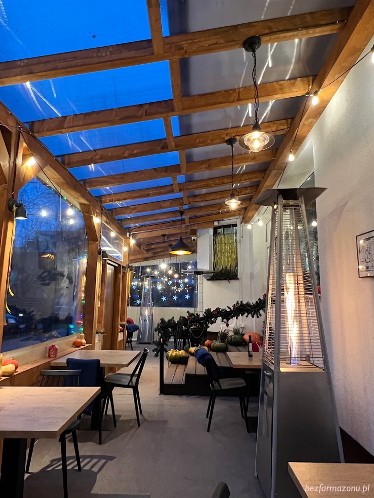 W listopadzie 2021 korzystając z inwitacji pojawiliśmy się w Wagonie celem sprawdzenia nowego menu. Zajęliśmy stolik w zewnętrznym, ogrzewanym zimowym ogrodzie, a na nogi zarzuciliśmy dostępne na krzesłach koce.
