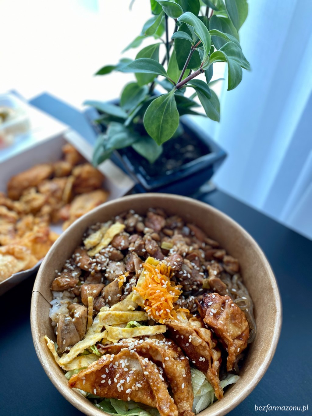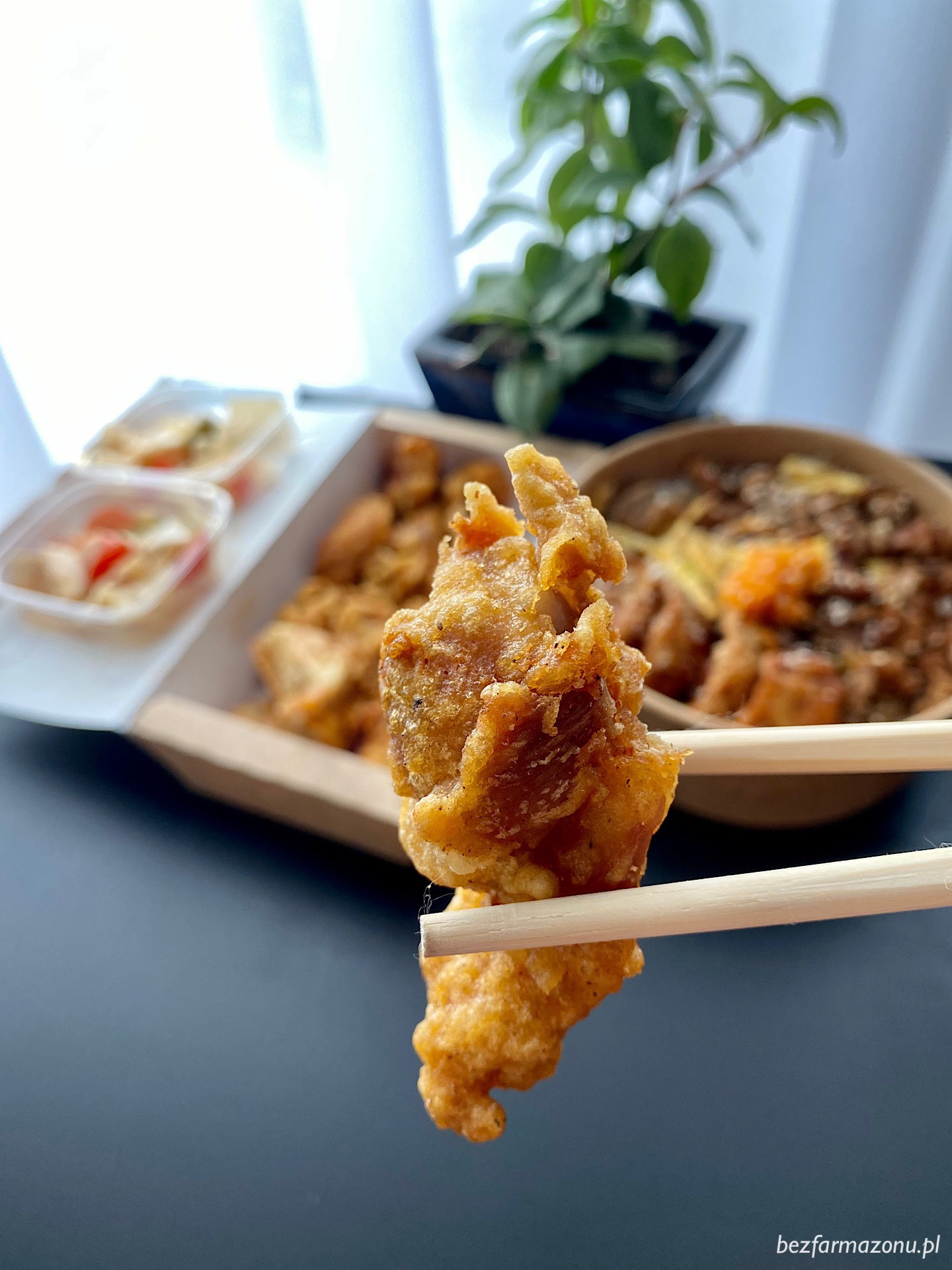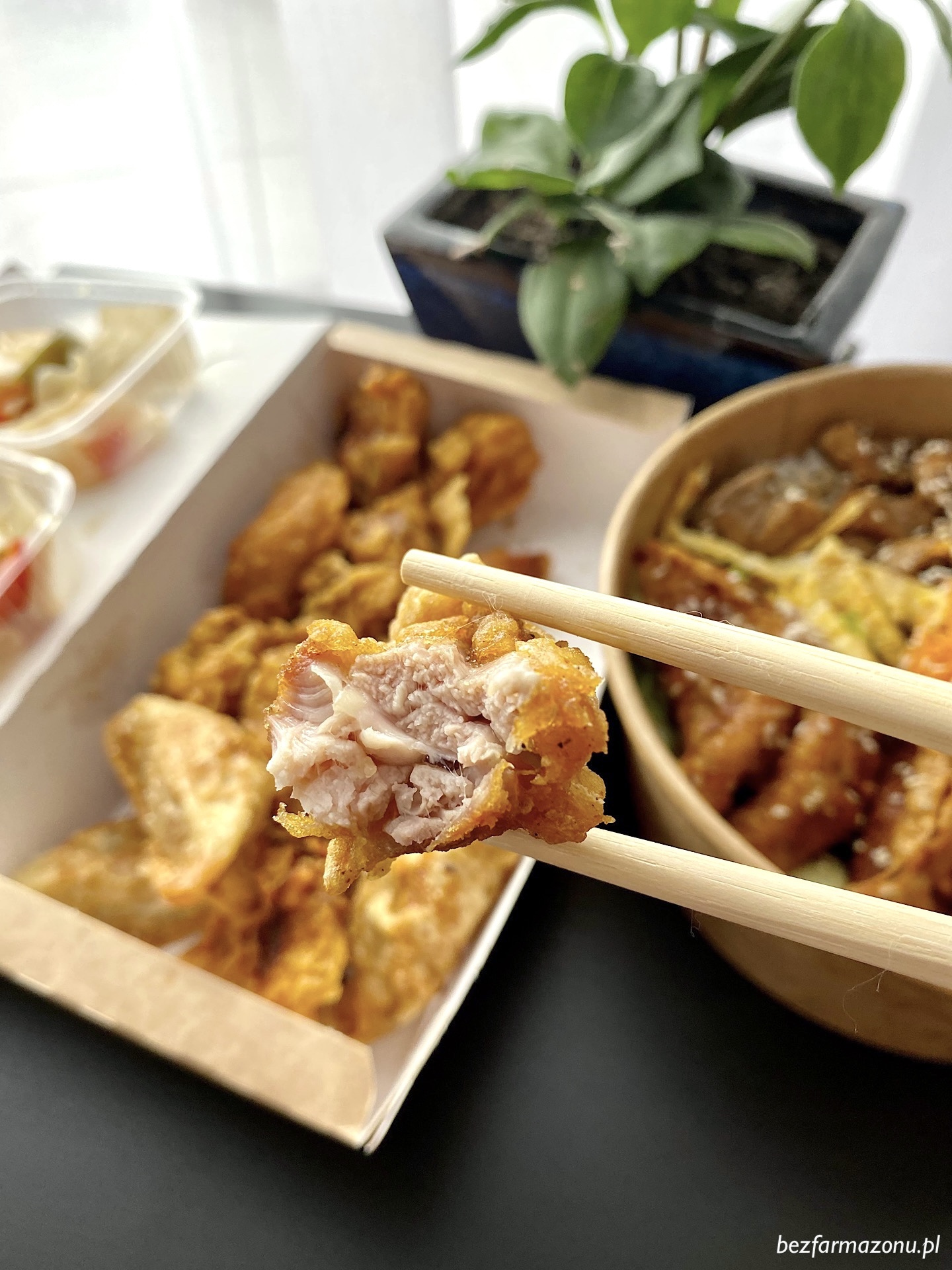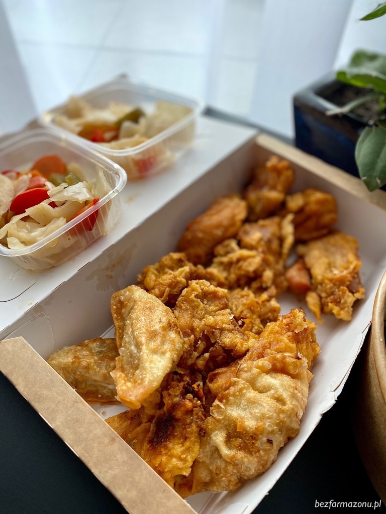 Tak jak w przypadku cupbopów tak i przy kurczakach ważne są dodatki. Tutaj również wybrałem pierożki, lecz tym razem z kurczakiem (10,50 PLN). Dostałem bardzo komfortowe i smaczne azjatyckie pyszności.