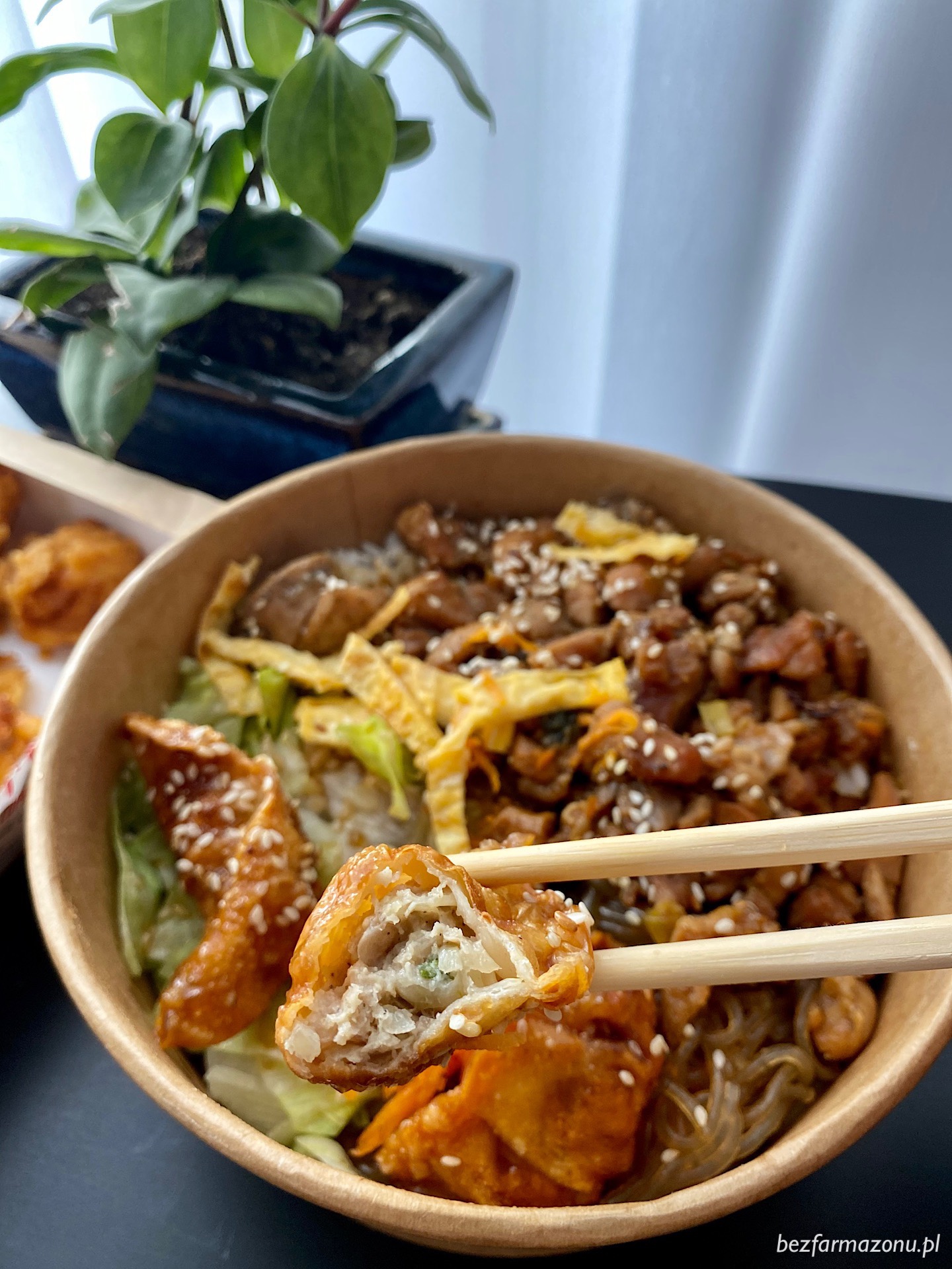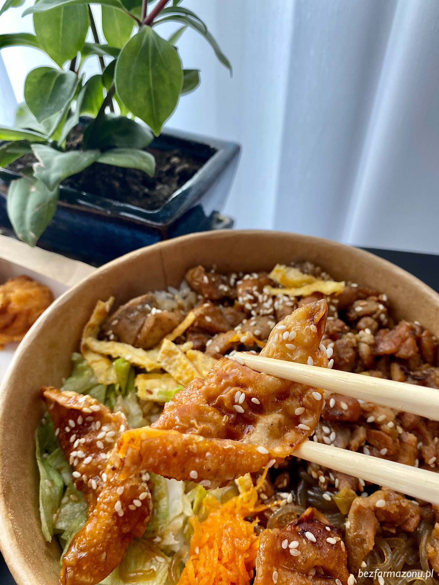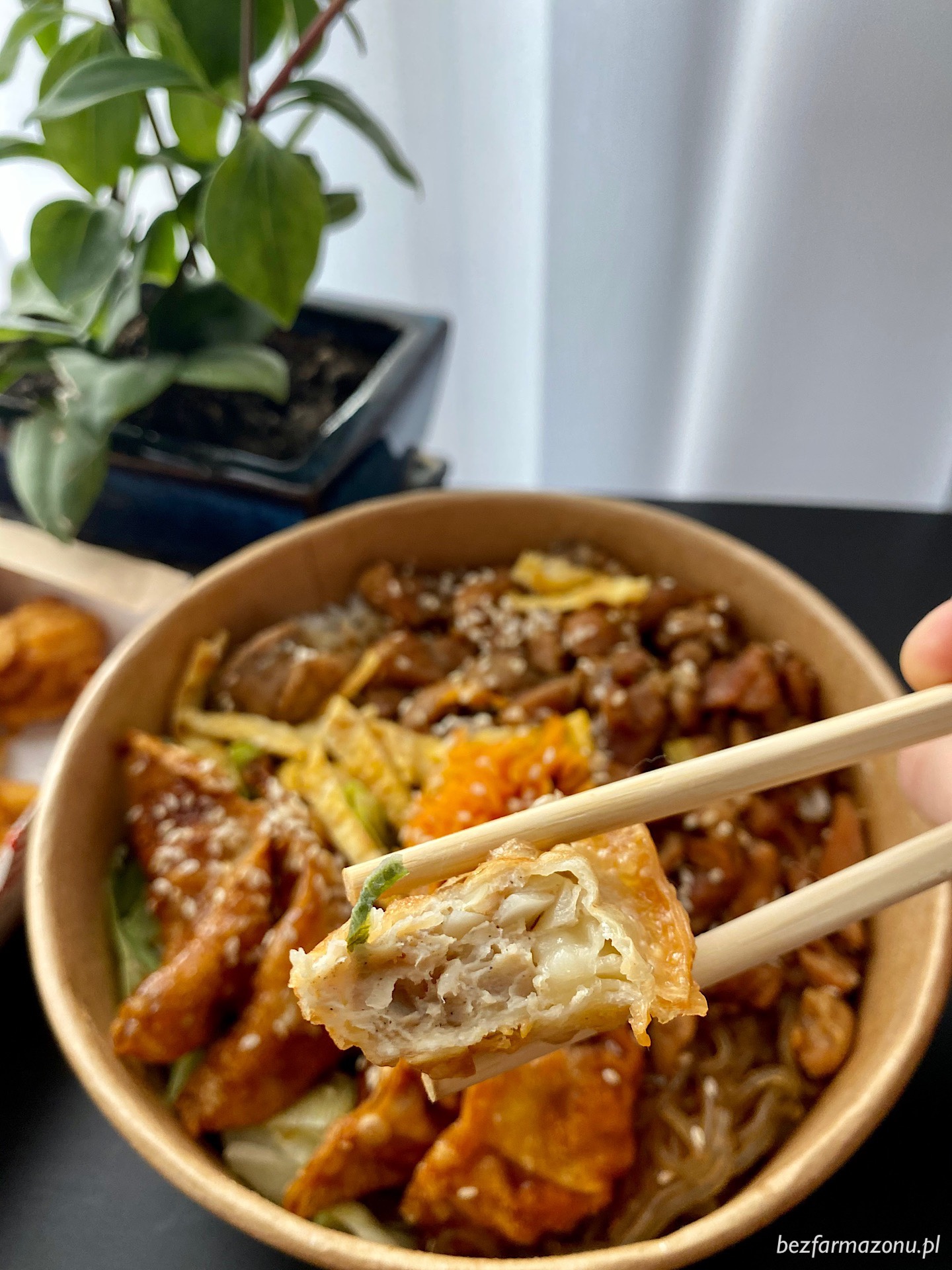 Tak jak w przypadku cupbopów tak i przy kurczakach ważne są dodatki. Tutaj również wybrałem pierożki, lecz tym razem z kurczakiem (10,50 PLN). Dostałem bardzo komfortowe i smaczne azjatyckie pyszności.