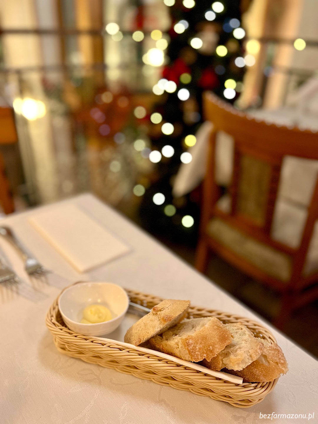Po zajęciu miejsc na antresoli pojawiła się bardzo miła pani z kartami. Chwilę później podała czekadełko w formie masła i słabej jakości pieczywa przy wypieku którego zapomniano o jakże cennym kruszcu jakim jest sól.