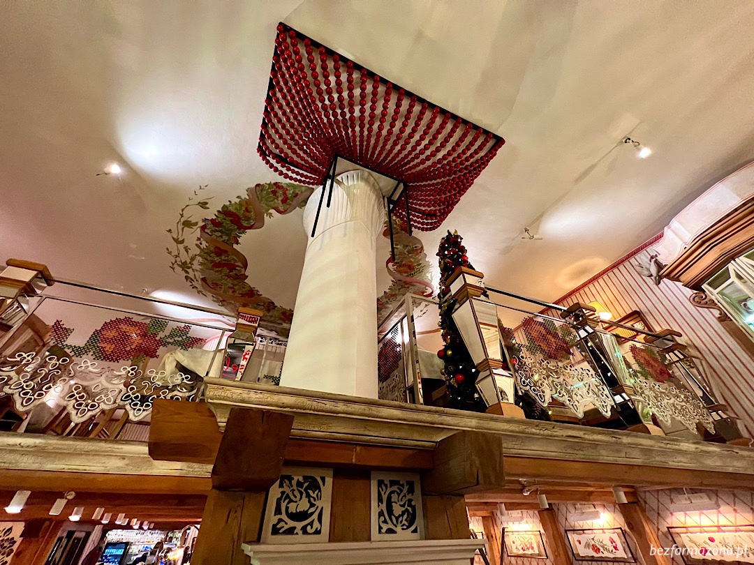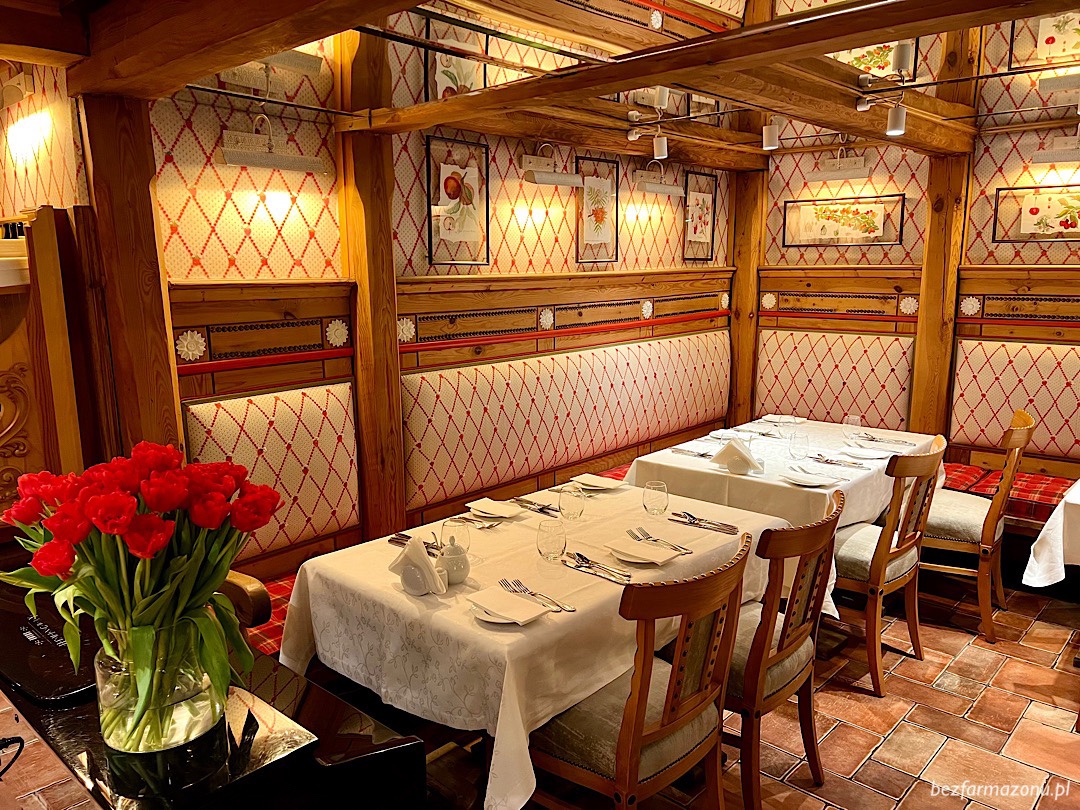 Wnętrza są pełne folkloru i polskich, tradycyjnych akcentów.
