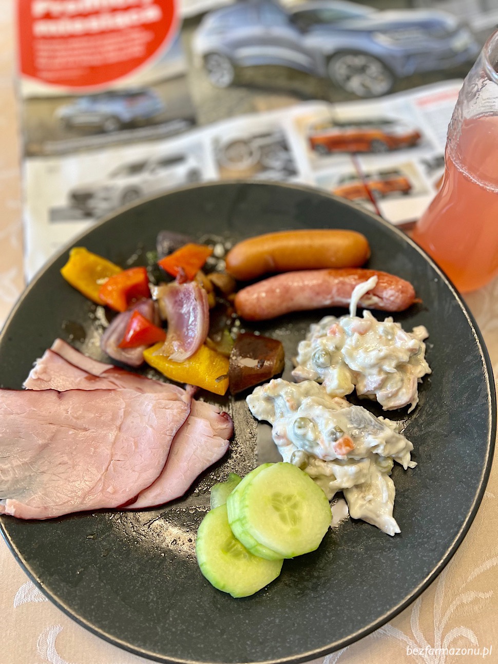 Przez cztery doby śniadania nie zdążyły się znudzić. Każdego dnia w bemarach wdzięczyły się pozycje na ciepło: kiełbaski, parówki, jajecznica, warzywa z grilla, leczo, naleśniki, fasolka, boczek.