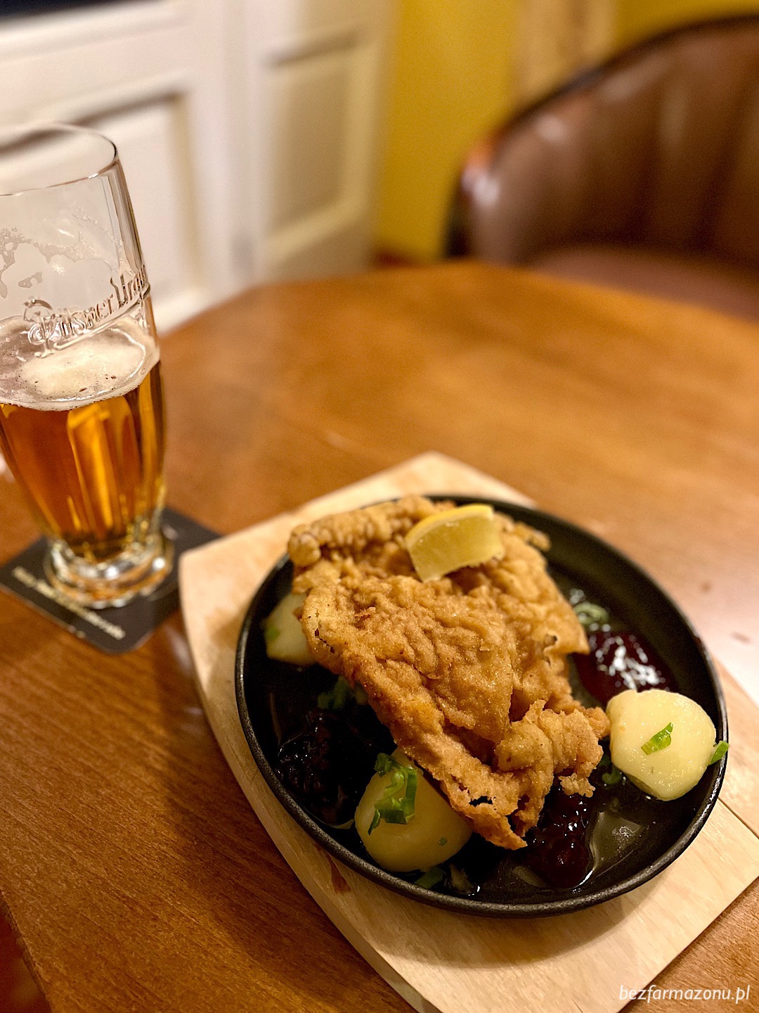 Dania poniżej to sznycel po wiedeńsku z gotowanymi ziemniakami i marmoladą z żurawiny (11,50 Euro) oraz faszerowana suszonymi pomidorami kurza pierś ze szparagami i puree z pasternaku. (10,50 Euro). Obydwa świeże i smaczne, jak najbardziej godne polecenia.