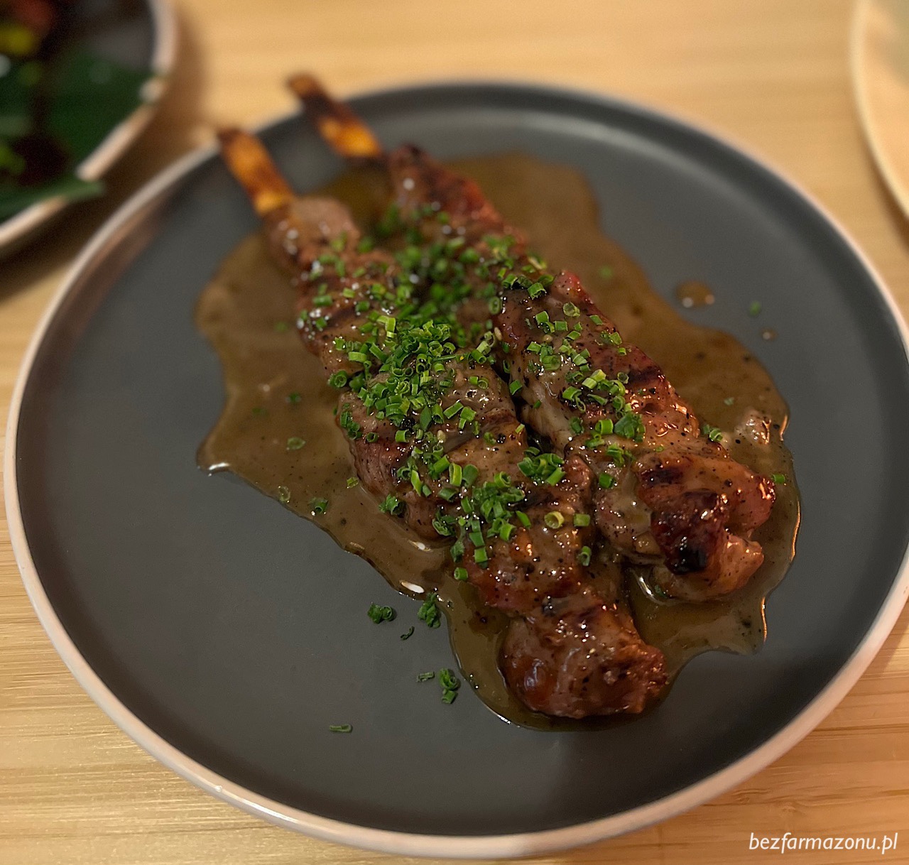 - yakiton – grillowane szaszłyki z polędwicy wołowej w glazurze z czarnego pieprzu (25 PLN)