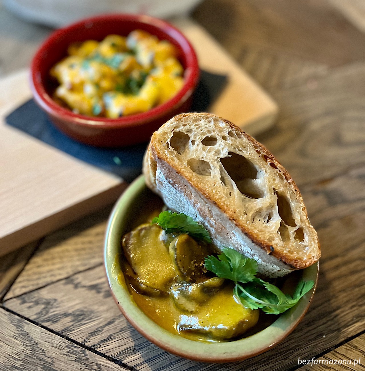 Gęsie żołądki w sosie curry (23 PLN) zaskoczyły nienachalnością oraz delikatnością. Jak nie lubię żołądków, tak te szczerze mi smakowały. Ze świeżym pieczywem nic więcej im nie trzeba.