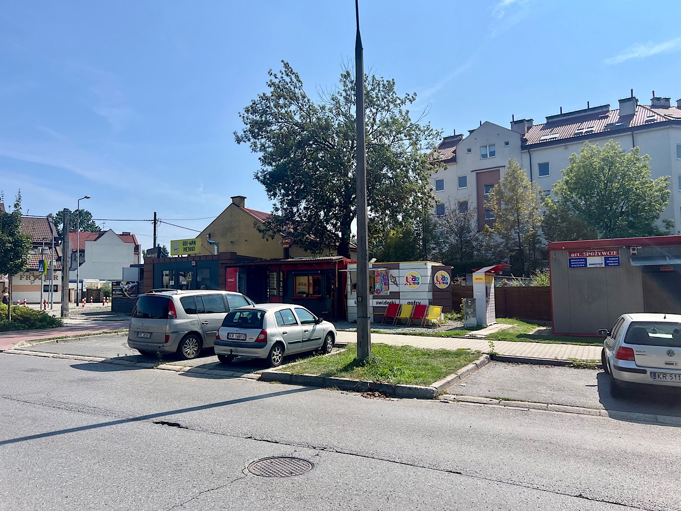 Mały skwer tuż przy Rondzie Grzegórzeckim. Obecnie znajdziecie tam kuchnię roślinną, burgery z chrupiącymi kurczakami oraz gruzińskie specjalności.