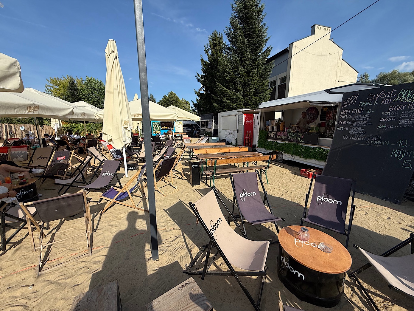 Miejscówka tuż przy Błoniach z centralnym barem serwującym alko i niealko napoje. Po jednej stronie ulokowane są gastronomiki, po drugiej sekcja chillowa z leżakami na piasku.