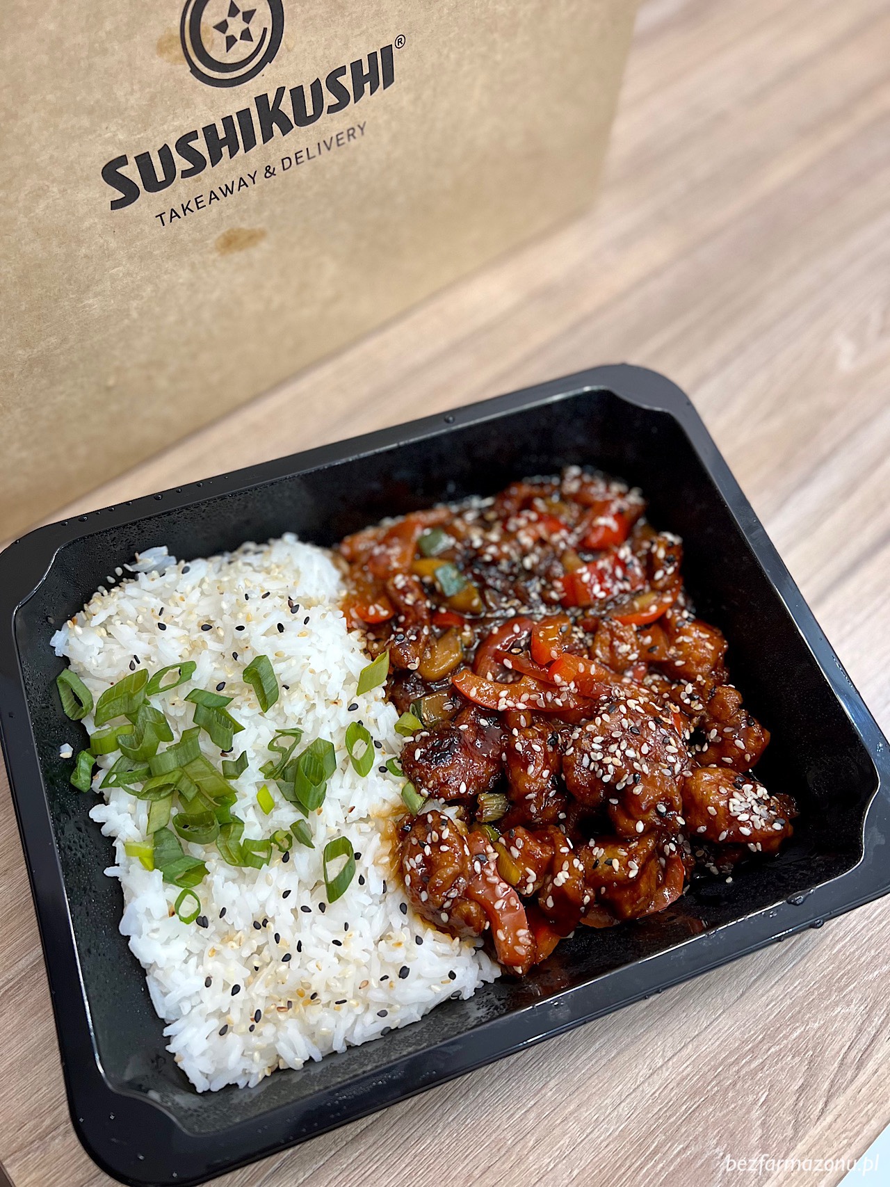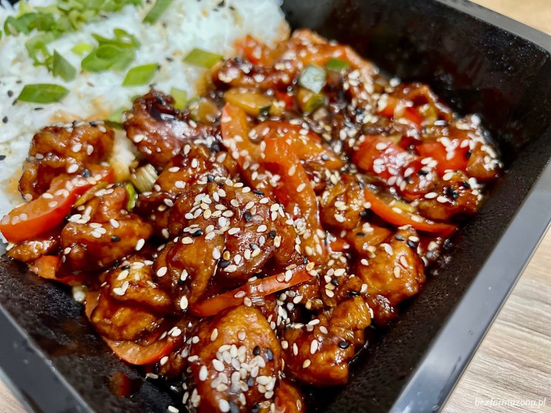 Spójrzcie na glazurę – no kurcze miłość od pierwszego spróbowania! Papryka, sezam, szczypior, cebuuuulka. Owszem, jak na kurczaka z ryżem cena jest powyżej średniej, ale co jest to dobre to brak słów by opisać.