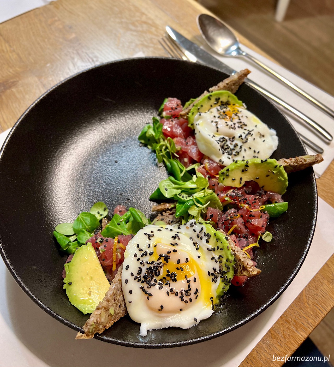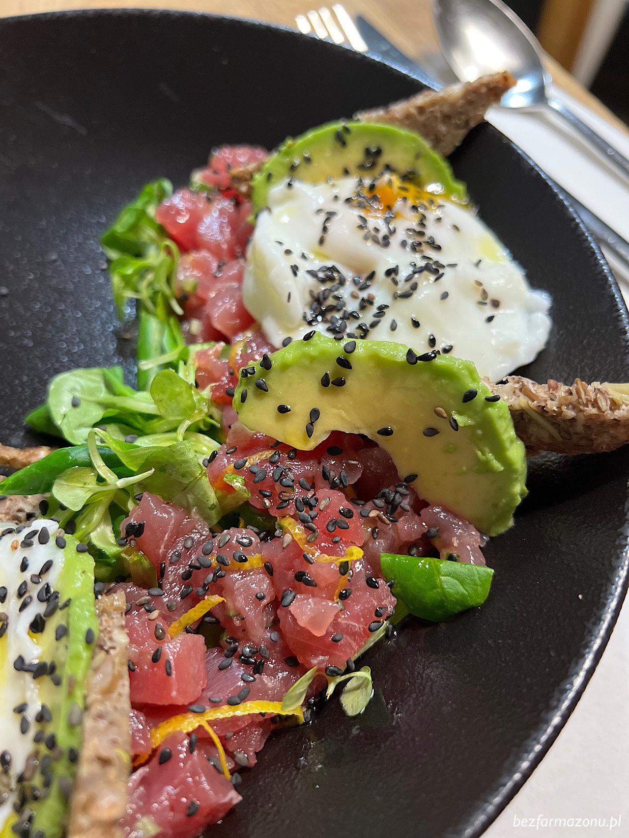 Wtórowały mu jajka w koszulkach, roszponka, dojrzałe awokado oraz rewelacyjne ziarniste pieczywo. Wszystko potraktowane odrobiną oliwy extra virgin oraz czarnym sezamem.