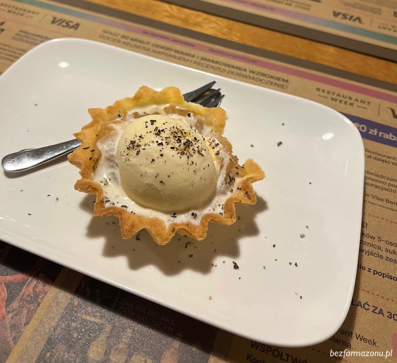 Dla obydwu opcji, tym samym deserem była szarlotka z lodami.
