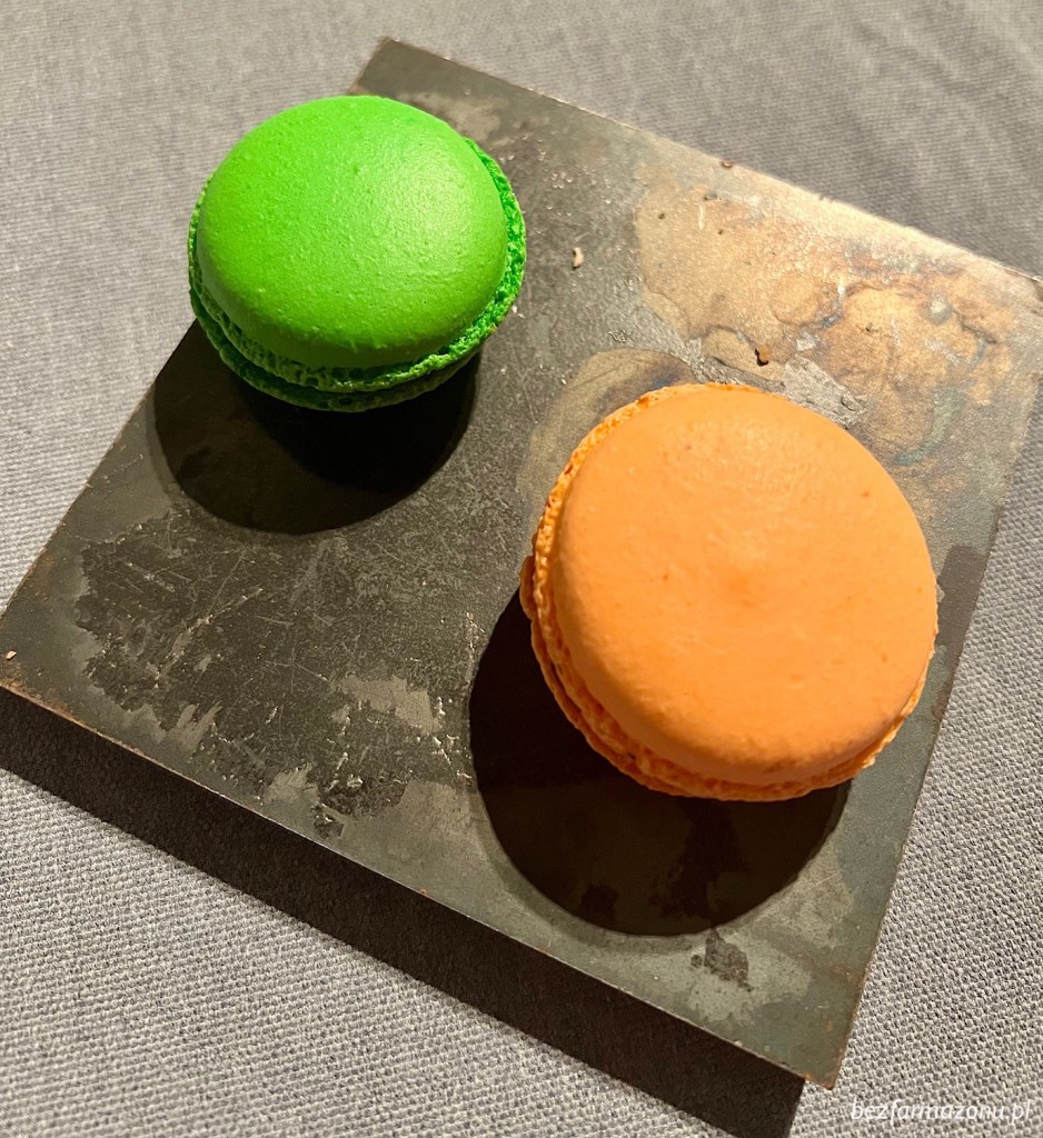 Temat słodyczy uratowały petit fours – wybitnie słodkie, odrobinę kleiste makaroniki z intensywną deserowo – mleczną czekoladą.