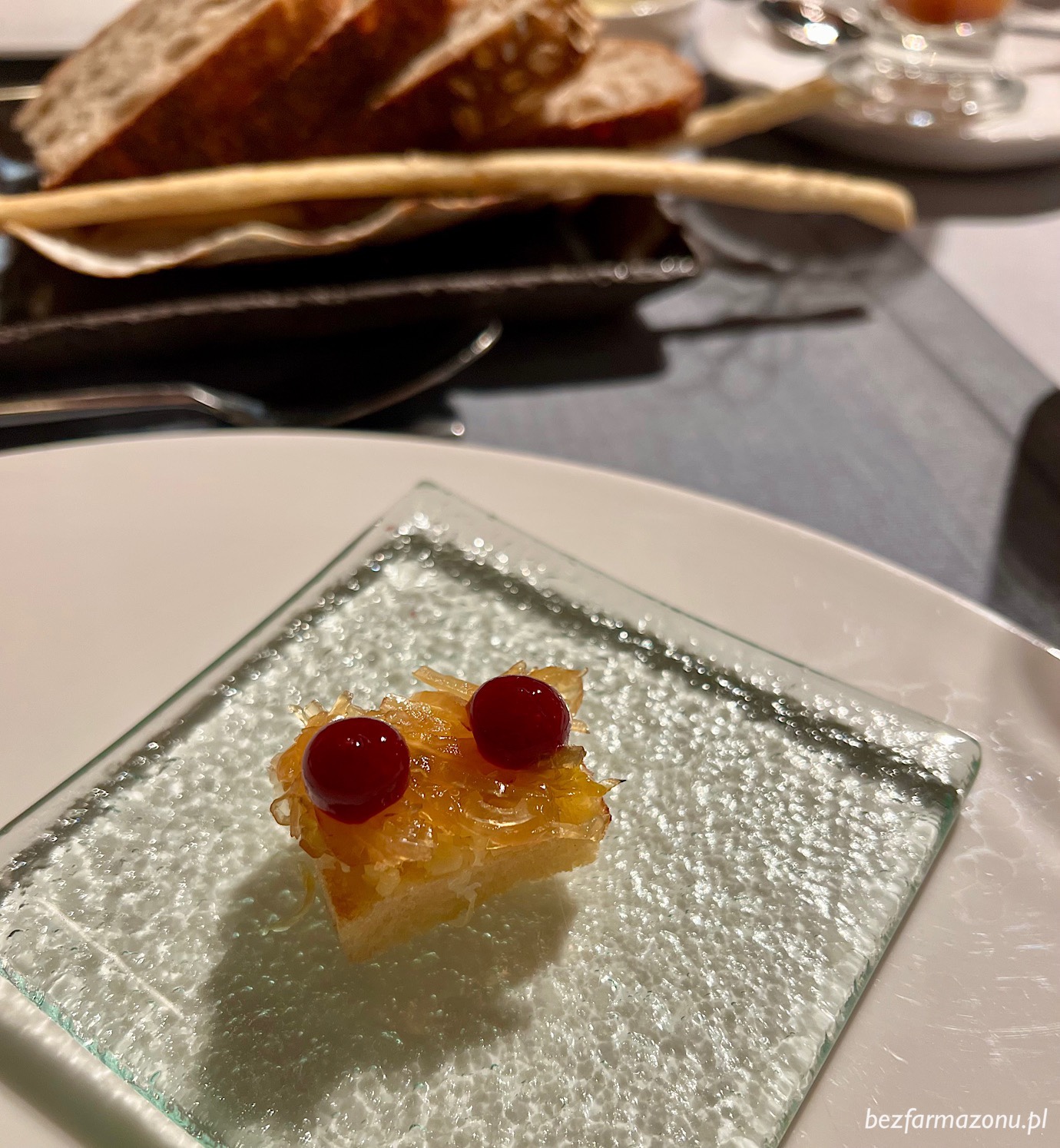 Szef kuchni poczęstował również amouse bouche w formie chałki z karmelizowaną cebulką.