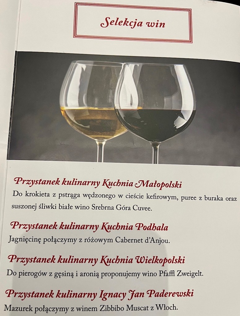 Kolacja została podzielona na cztery sekcje, a do każdych potraw zestawiono odpowiednie wina.