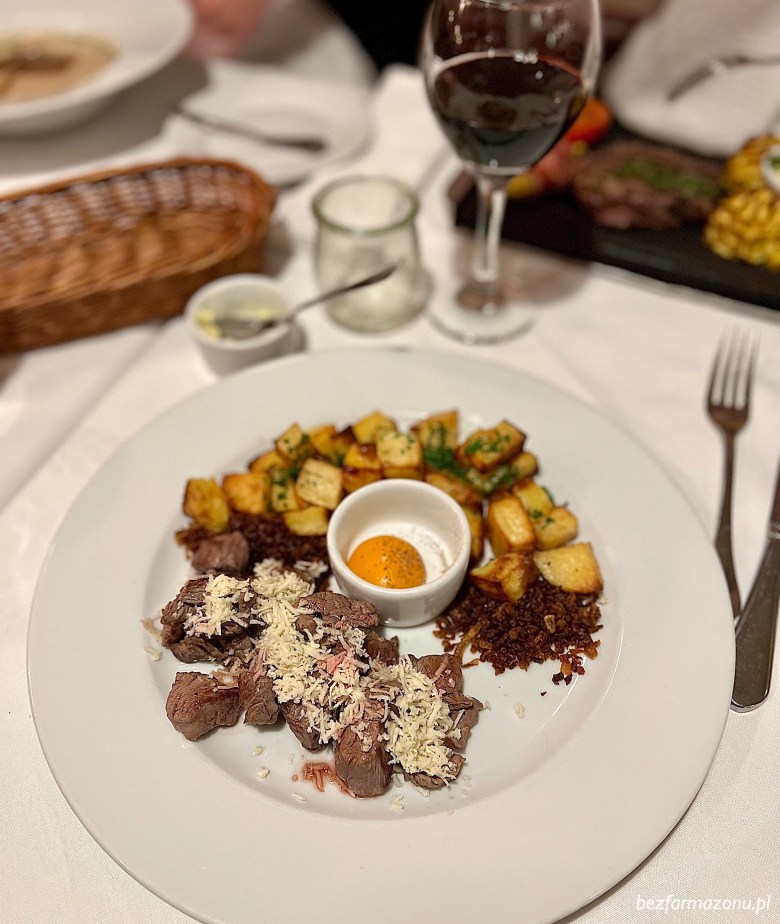 Lokal bardzo elegancki i ekskluzywny. Byliśmy tam w około 15-cie osób i nie kojarzę wszystkiego co dokładnie było jedzone. Pamiętam za to bardzo dobrze, że każda jedna opcja była fantastyczna w smaku. W głowie pozostał mi tatar z renifera oraz idealna polędwica wołowa owinięta bekonem.