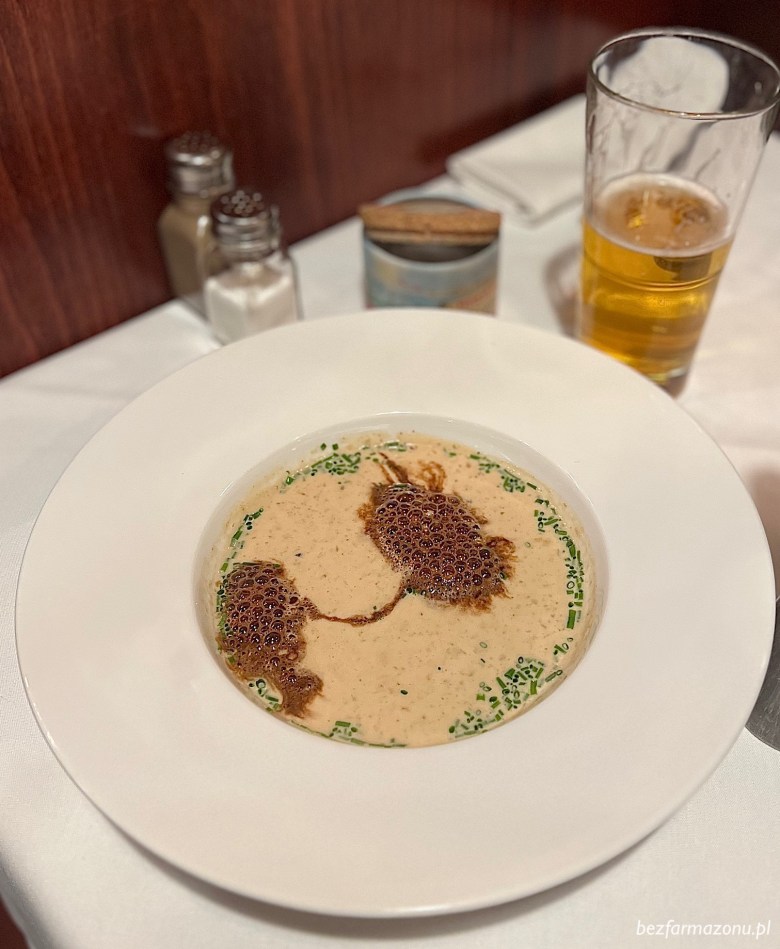 A. poprosiła o zupę grzybową (38 PLN), a jej aromat unosił się przy stoliku dobrych kilka minut.