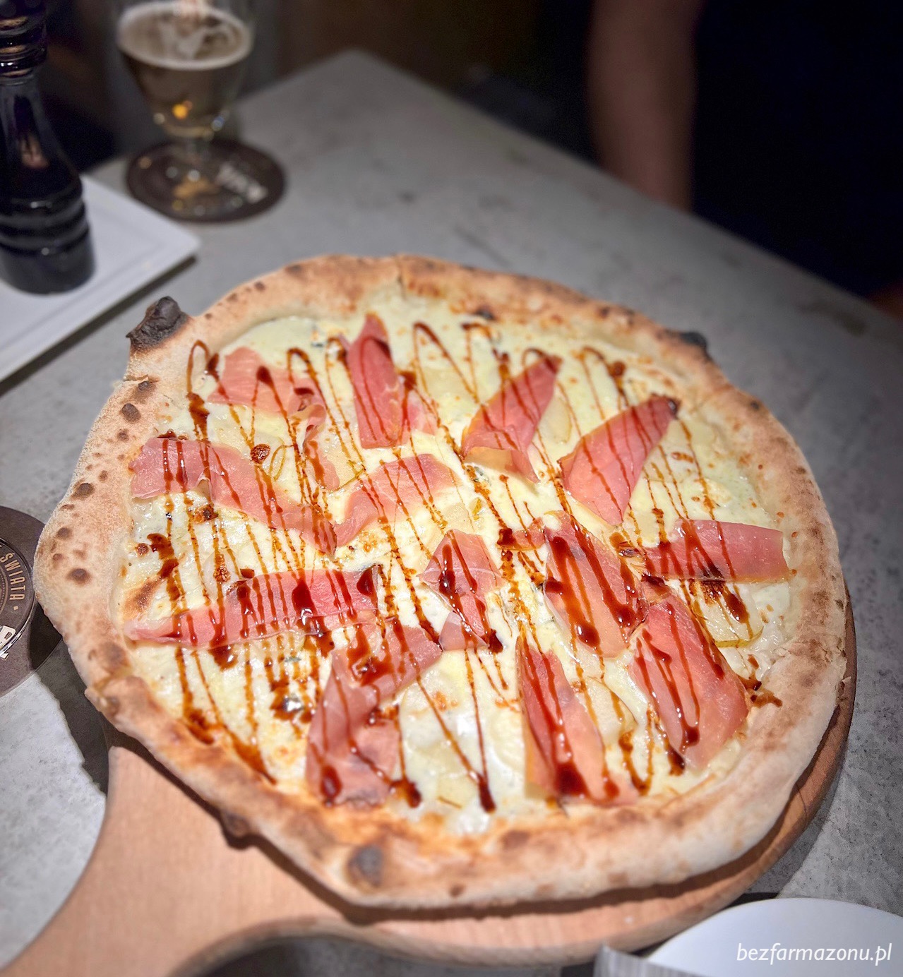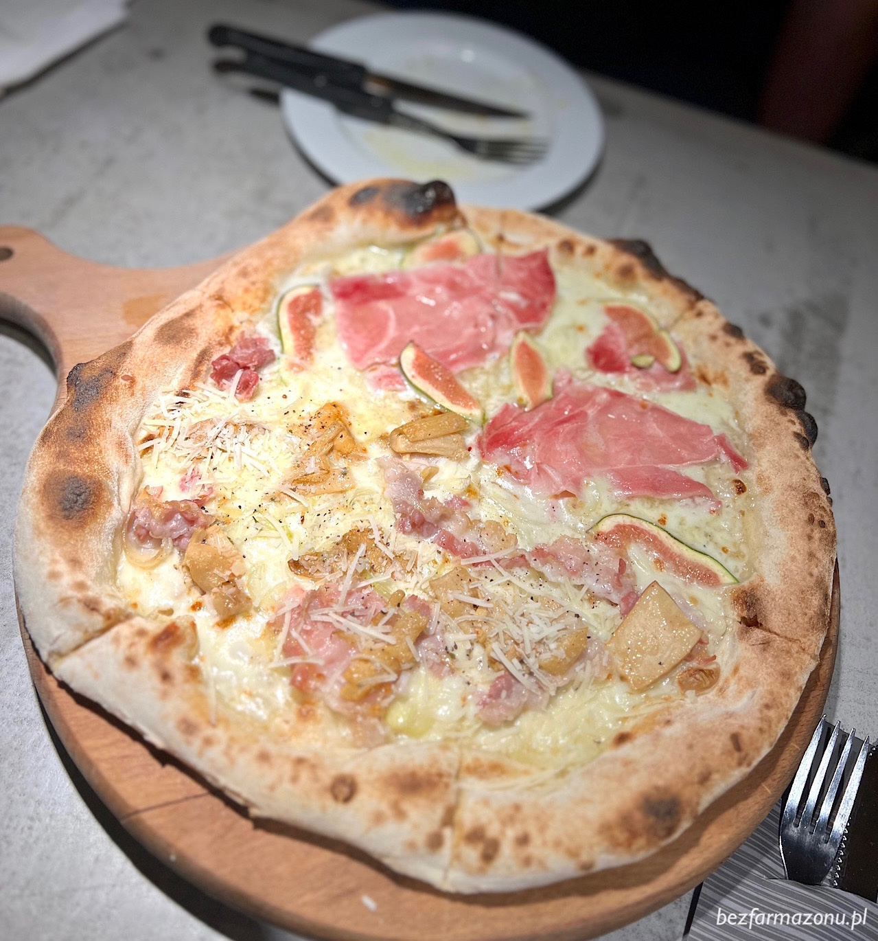 Placki, mimo nie do końca pięknego wyglądu odebraliśmy bardzo pozytywnie – szczególnie te o słodkich nutach: z figami lub gruszką. Cienkie ciasto, smaczne dodatki, dobre wypieczenie. Najsłabsza była z mortadelą i pistacjowym pesto – pierwszy raz spotkałem się aby włoską mortadelę zapieczono wraz z pizzą, a nie położono świeżą na końcu pieczenia – ta wersja nie zagrała nam wcale.
