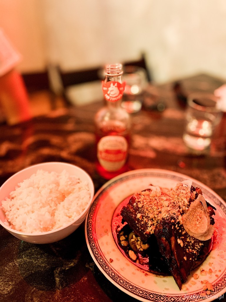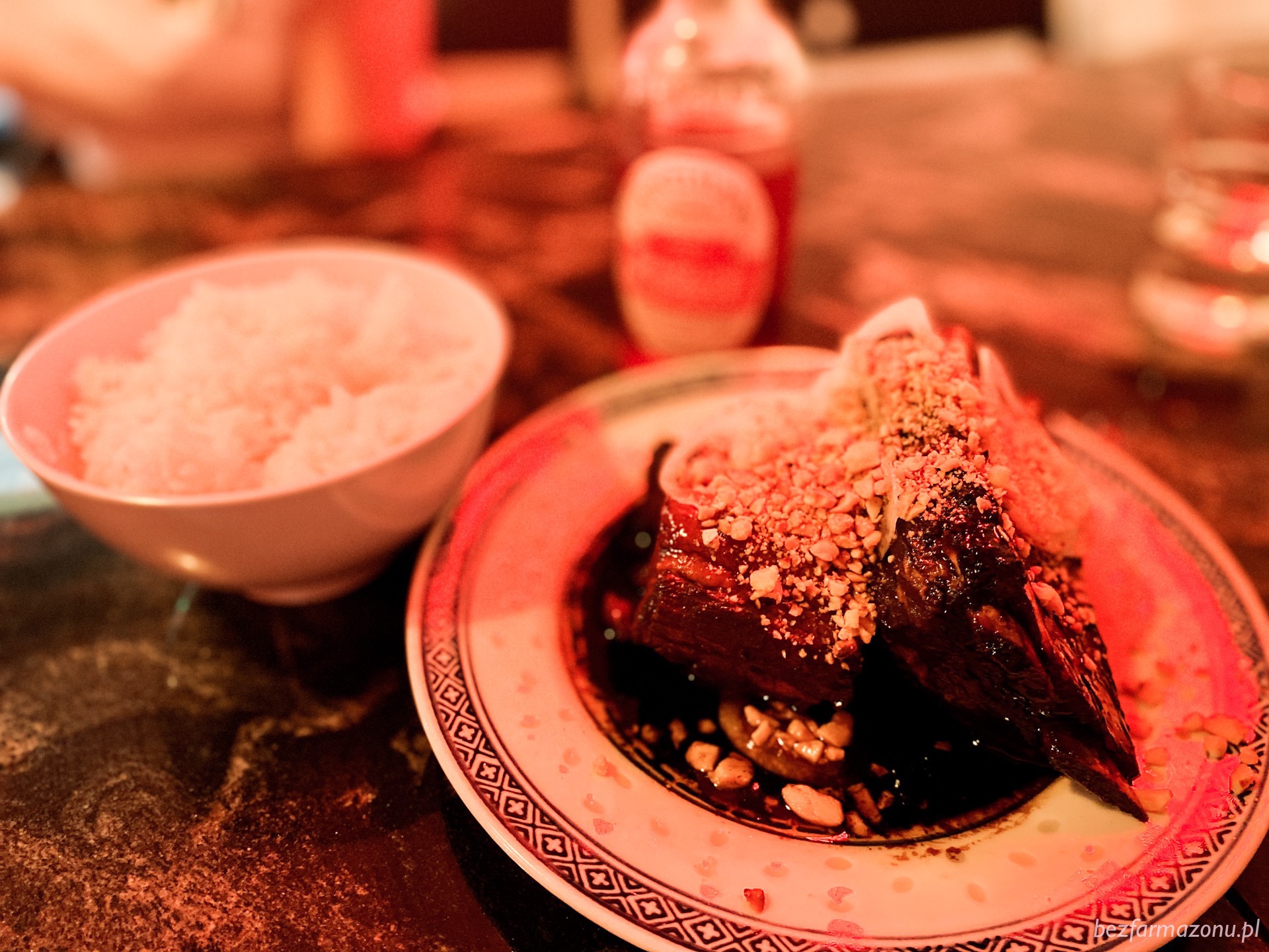 • słodkie i soczyste żeberka w stylu Hong Kong (24 PLN) z dodatkowym ryżem jaśminowym (5 PLN).