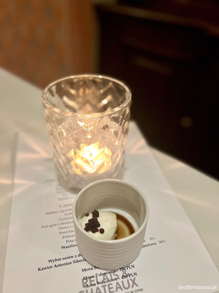 Niemałym zaskoczeniem był fakt niepodania na sam koniec petit fours… To chyba pierwsza kolacja typu fine dining na zakończenie której zabrakło owego finalnego mini poczęstunku, który zazwyczaj jest w formie czekoladek, ciasteczek lub cukierków.