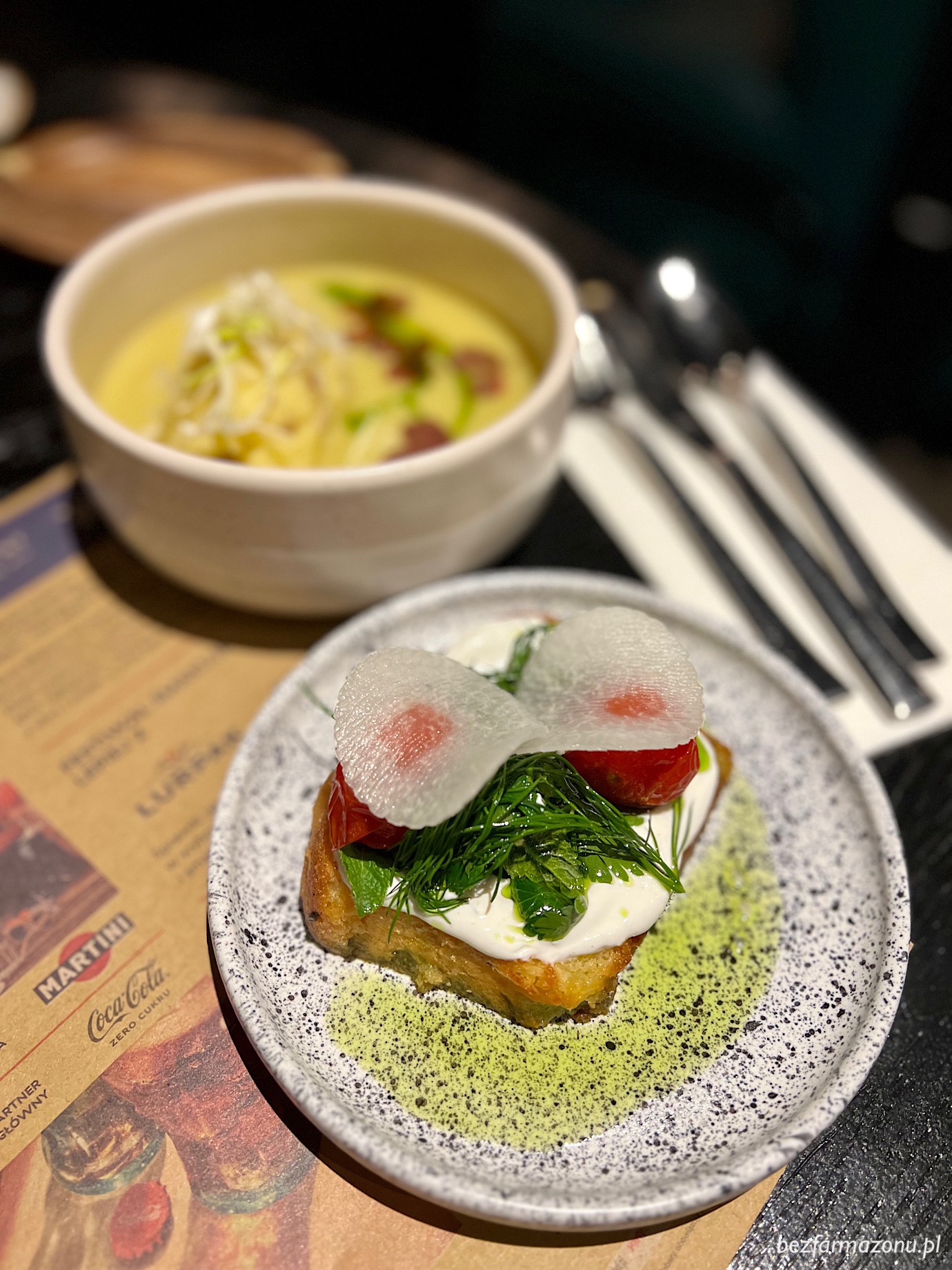Kolację otworzył pszenno – maślany poczęstunek oraz rzeczony wyżej koktajl (dostępny również w opcji bezalko).