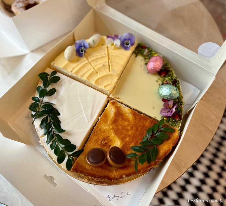 W kwietniu 2023, co by o pustych rękach nie pojechać w rodzinne strony na Wielkanoc, zamówiłem sernikowego boxa (220 PLN). W pudełku czekały takie oto cuda:
