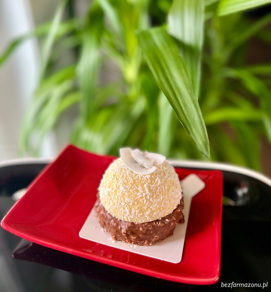 - bounty z intensywnie czekoladowym spodem, czekoladowym wypełnieniem oraz cremeux z białej czekolady i kokosa;