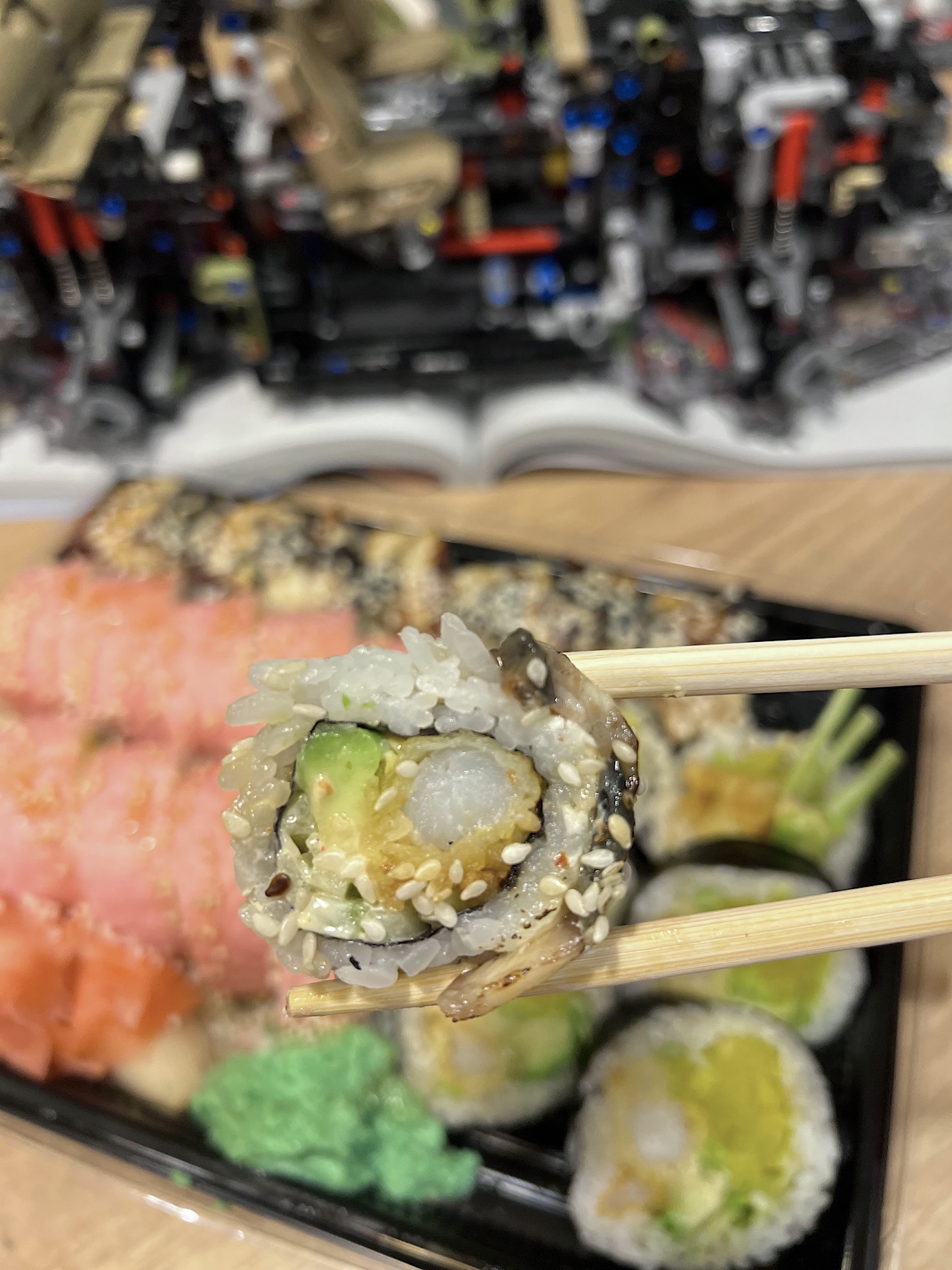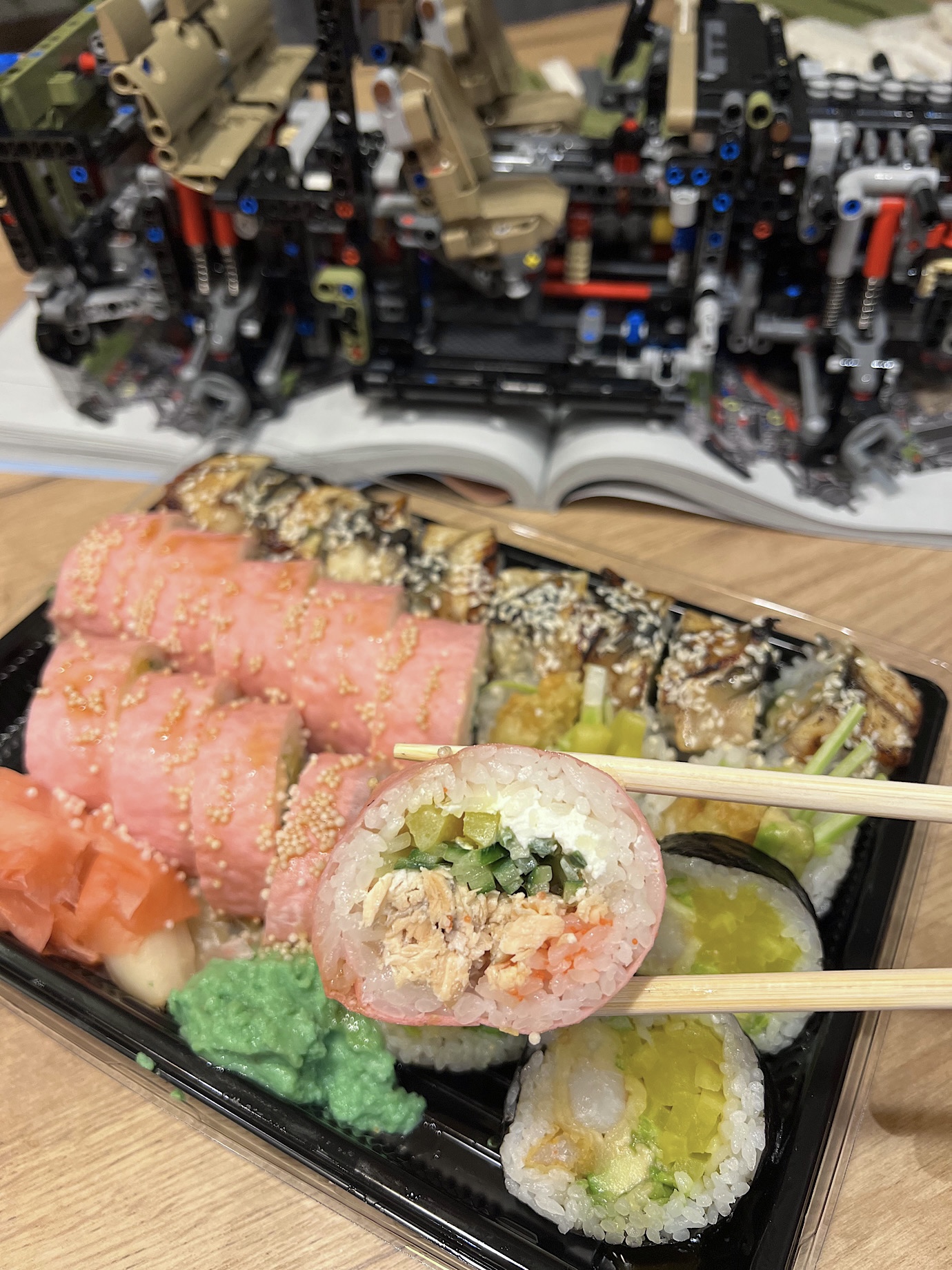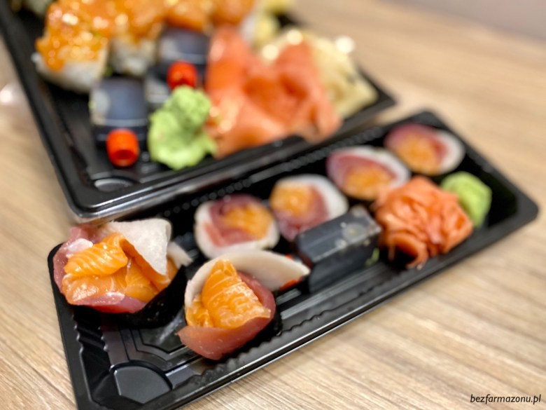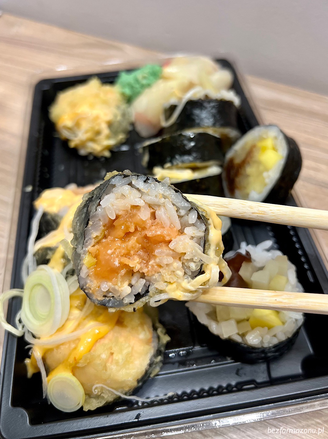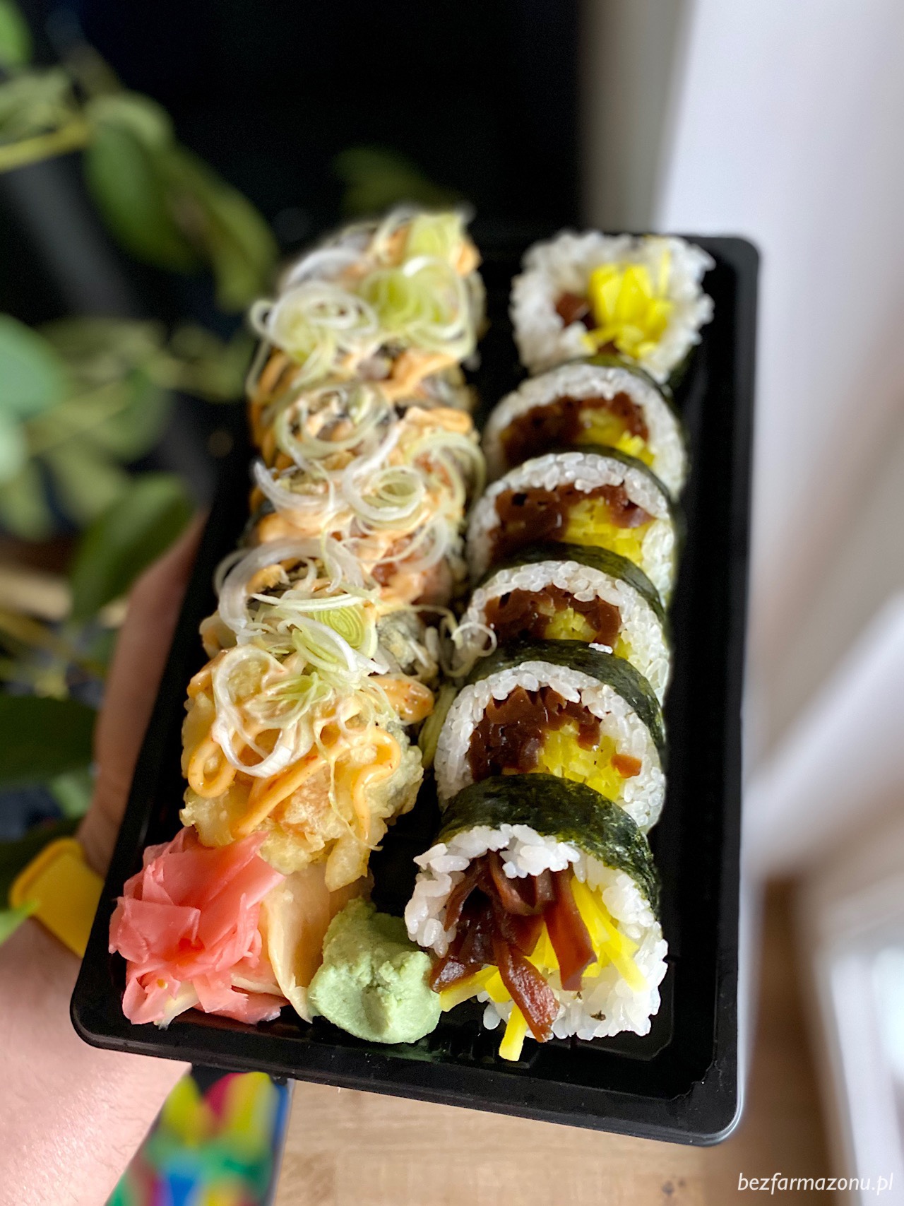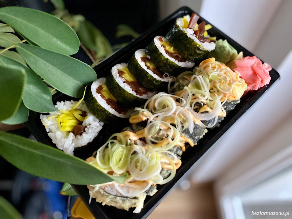 Styczniem 2022 postanowiłem poprawić sobie humor najlepszym sushi w Czyżynach. Zamówiłem futomaki wege (21 PLN) oraz uramaki samurai roll (36 PLN).
