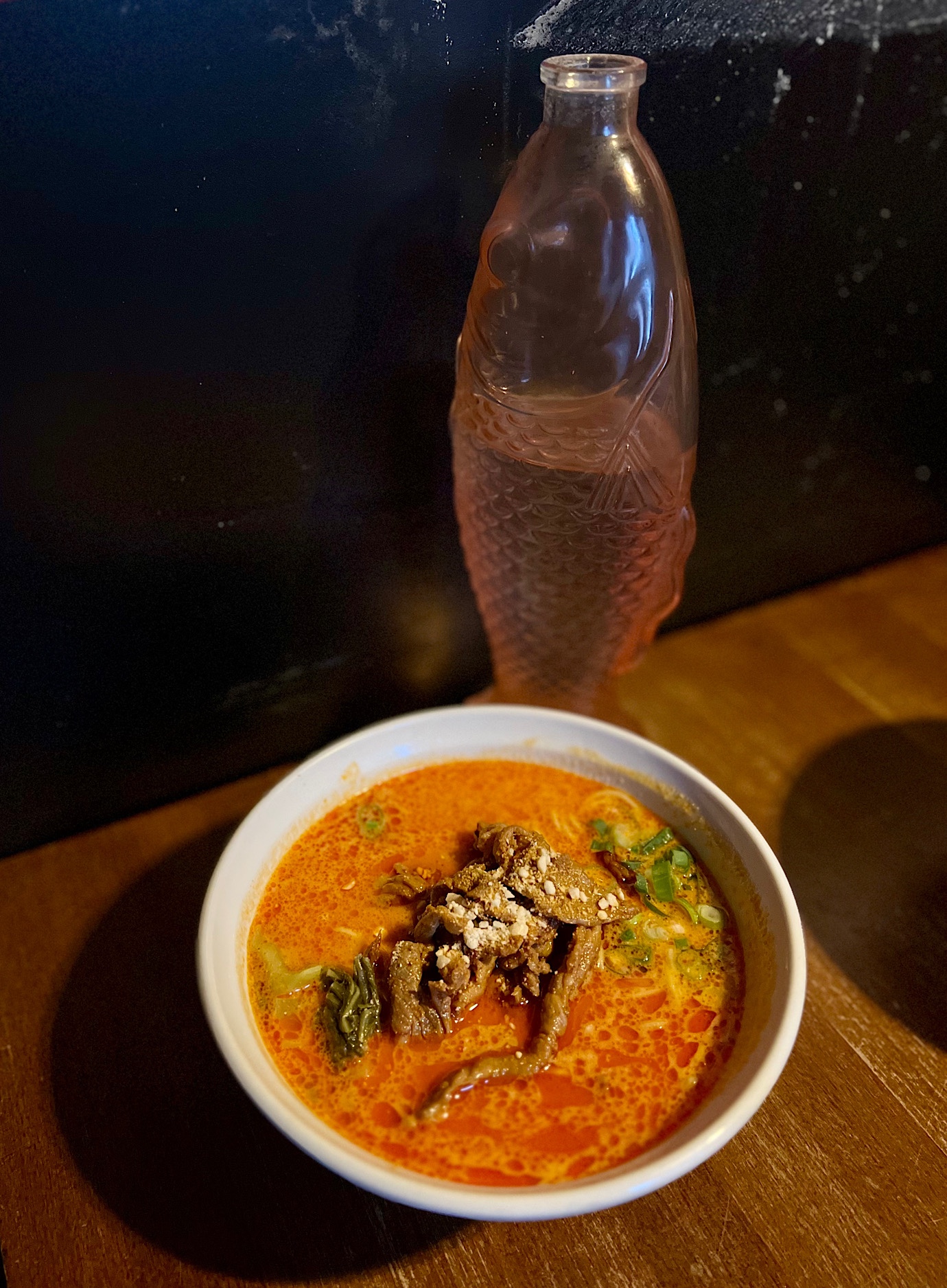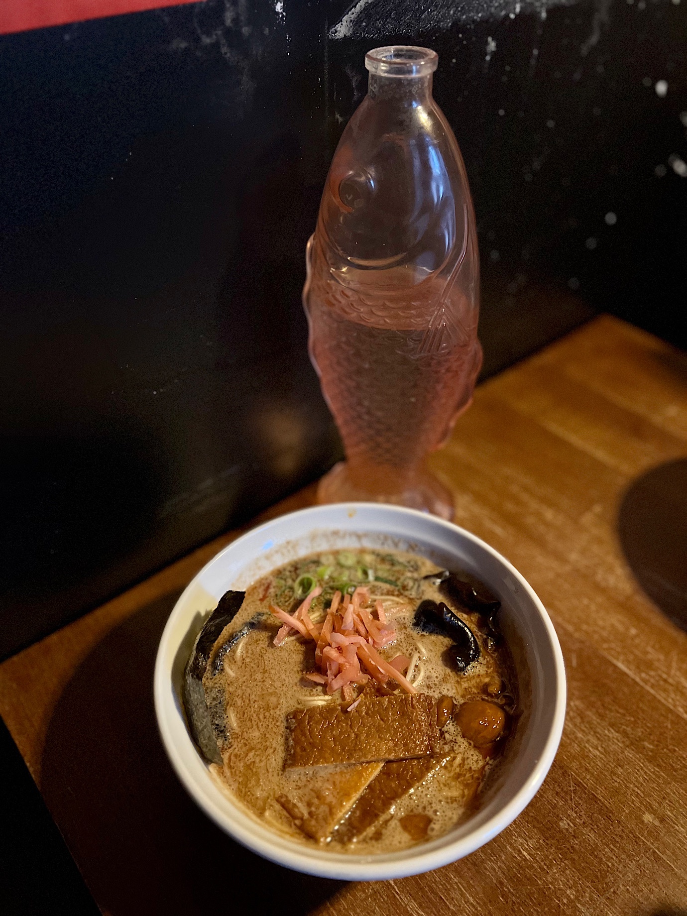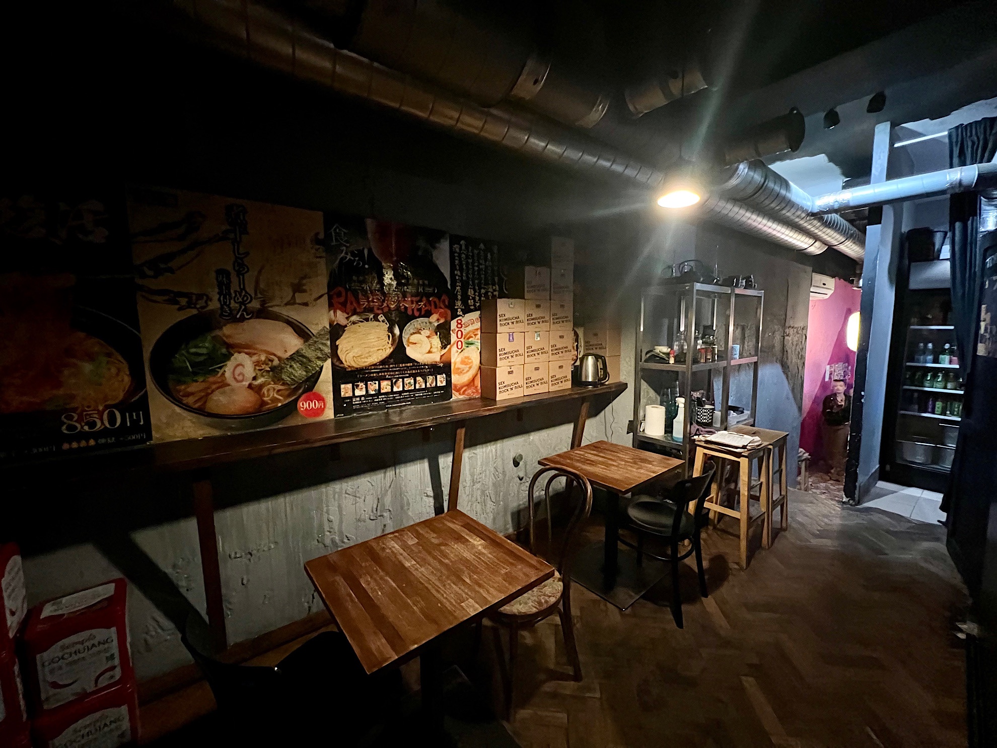 Ramenownia z zewnątrz jest bardzo niepozorna. Wąskie wejście, otwarta kuchnia, parę stopni po schodach i myk – jesteście w sali dla gości. Kilka stolików, lekki półmrok, artystyczny nieład. Nie byłem w kraju kwitnącej wiśni, ale właśnie tak wyobrażam sobie tamtejsze ramenowe mekki. Nic pięknego, po prostu miejsce gdzie pod dachem można wsiorbać kluchy.