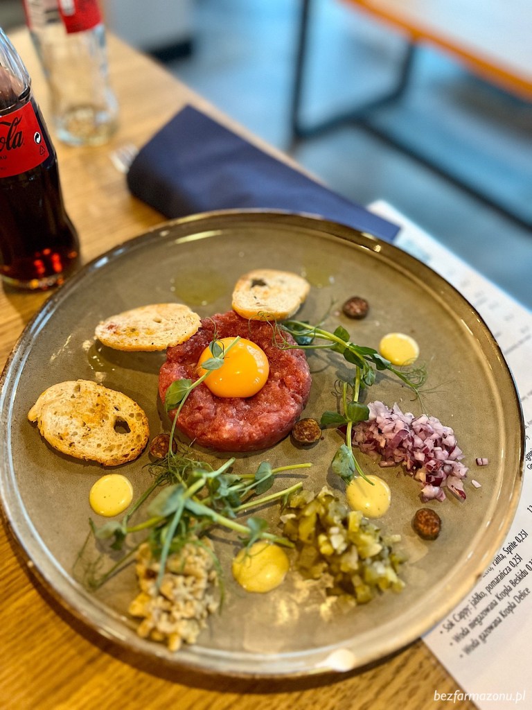 Tatar z polędwicy wołowej (39 PLN) nie byłby taki zły, gdyby nie fakt podania trzech twardych jak kamień grzanek, które de facto smakowały jak gotowce Bake Rolls.