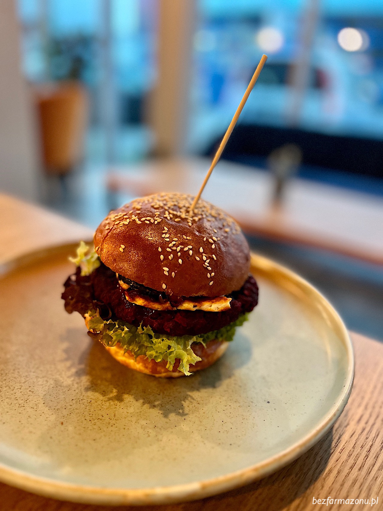 Teraz wyobraźcie sobie, że gryziecie ugotowanego buraka. Już? No to macie odpowiedź jak smakował pięknie opisany w karcie burger wegetariański. Zero smaku grillowanego Halloumi, cukini czy pikli. Podobno gdzieś tam miał być jeszcze malinowo – balsamiczny sos – niestety i on kompletnie nie istniał. Sorry, ale płacąc 37 PLN ma się sporo większe wymagania.