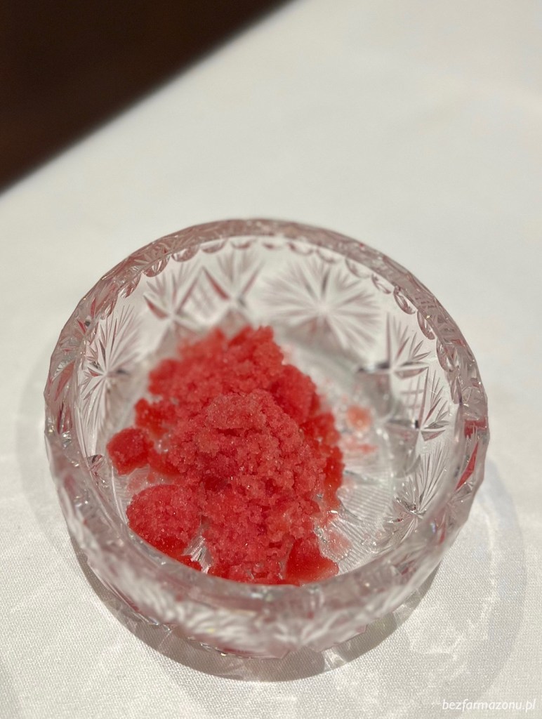 W ramach intemezzo zimna, kwaśna i orzeźwiająca granita z derenia oraz pomelo.