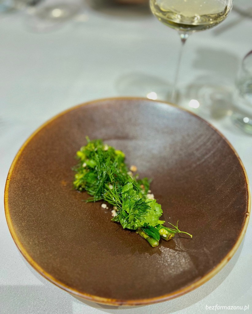 Tuż po nim pojawił się odświeżający dziki brokuł grillowany z pastą z fermentowanej papryki z bazyliowym majonezem, orzechami ziemnymi oraz miksem świeżych ziół.
