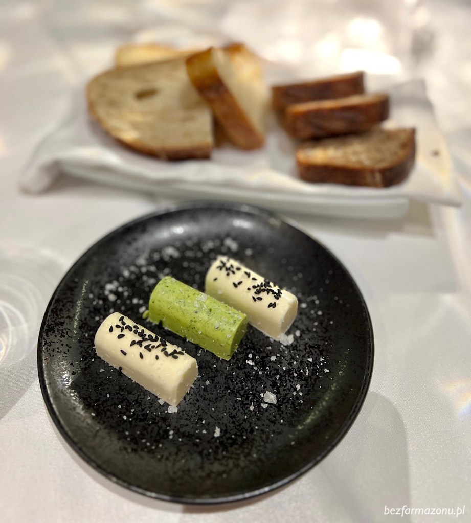 Na samym początku pojawiło się pieczywo z masłami: śmietankowym oraz koperkowo – pietruszkowym. Chleby wyborne, lecz zbyt twardemu masłu brakowało tej perfekcyjnej kremowości.