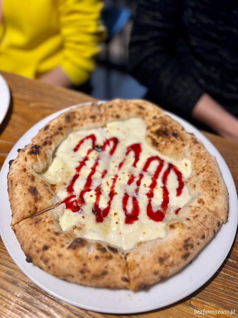 Quattro Formaggi (40 PLN) mozzarella, gorgonzola, mascarpone, ser owczy pecorino, sos z czerwonej porzeczki;