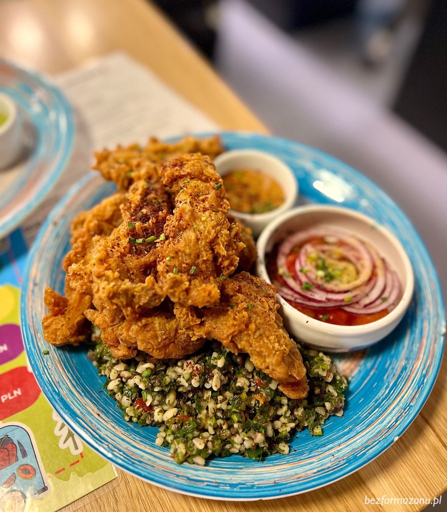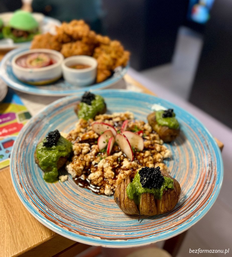 Sam nie wiem czy najbardziej pokochałem miękkie bułeczki Bao z boczniakami (43 PLN), kremowy twarożek z migdałów i tofu z ziemniakami Hasselback (43 PLN) czy panierowane boczniaki w lekko tłustej, turbochrupiącej panierce podane na sałatce tabbouleh (44 PLN).
