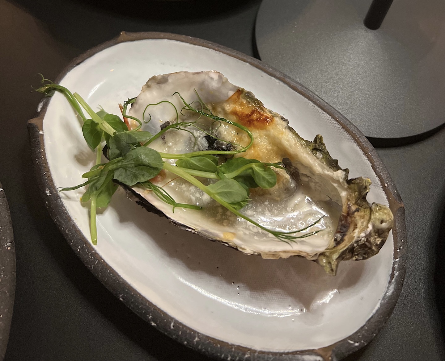 Jednomyślnie i bez głosów sprzeciwu, mistrzowskimi okrzyknęliśmy przegrzebki na wybitnym porowym sosie. Zaraz za nimi uplasowały się małże w pomidorach oraz jędrne krewetki. Ostrygom, zarówno tym na zimno jak po uprzednim podpieczeniu również nie brakowało świeżości.