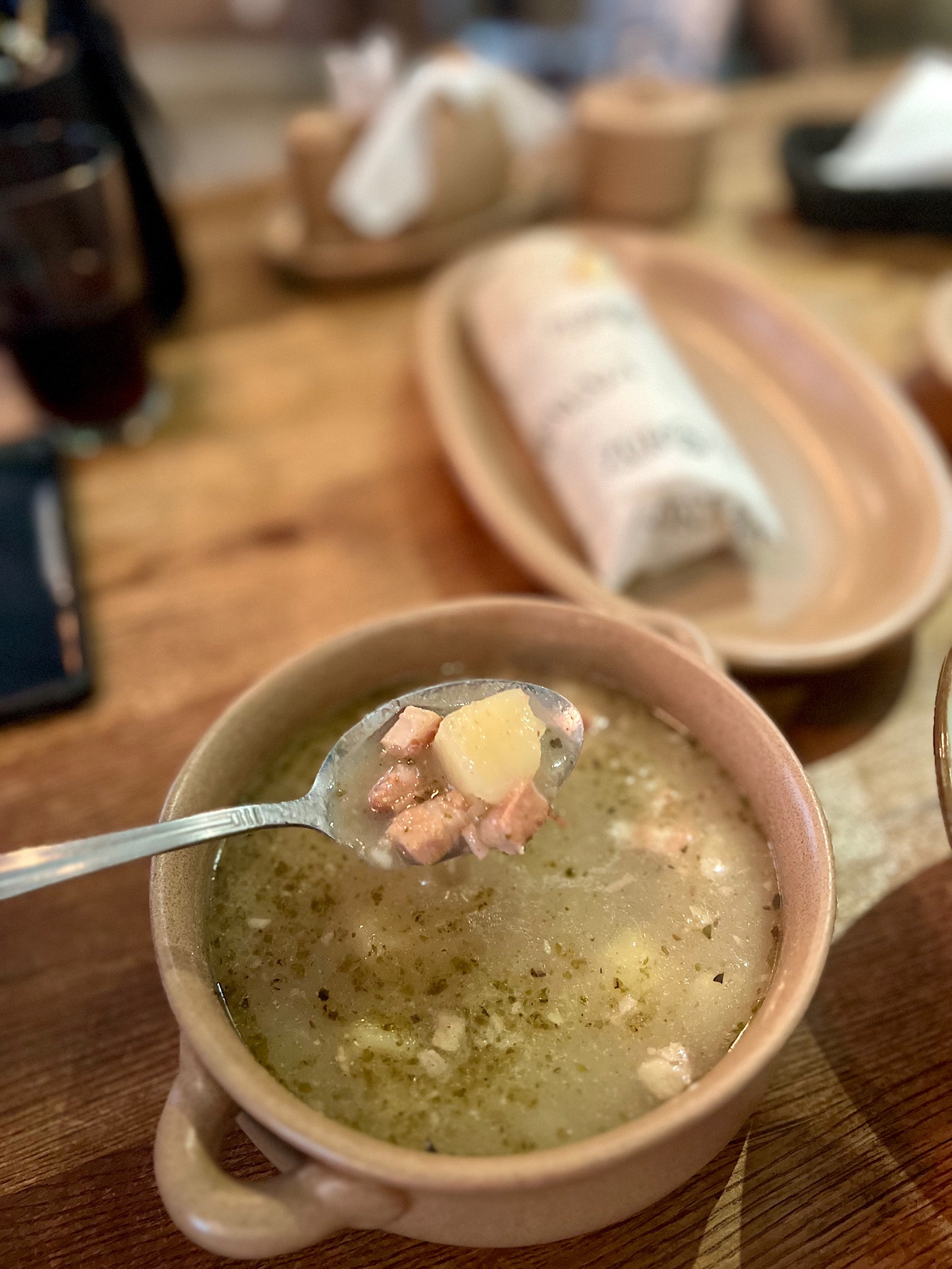 Lokal jak sama nazwa wskazuje specjalizuje się w żurze. Należało więc takowy zamówić. Tak jak pizzę zawsze testuję podstawową, tak i tutaj na pierwszy ogień poszedł klasyk z boczkiem i ziemniakami (17 PLN). Do zupy za kilka dodatkowych złotych od sztuki można dobrać jajko, kiełbasę, chrzan, śmietanę.