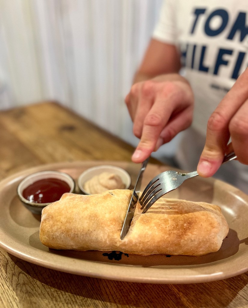 Wygląda to jak kebs, tyle że w tortilli na zakwasie żurowym znajdziecie nie mięsą mielonkę, a tą samą treść co na talerzu z kulebele czyli: super delikatna szarpana wołowina, dwie kapuchy modro i zasmażaną, kiszonego, cebulę oraz boczek.