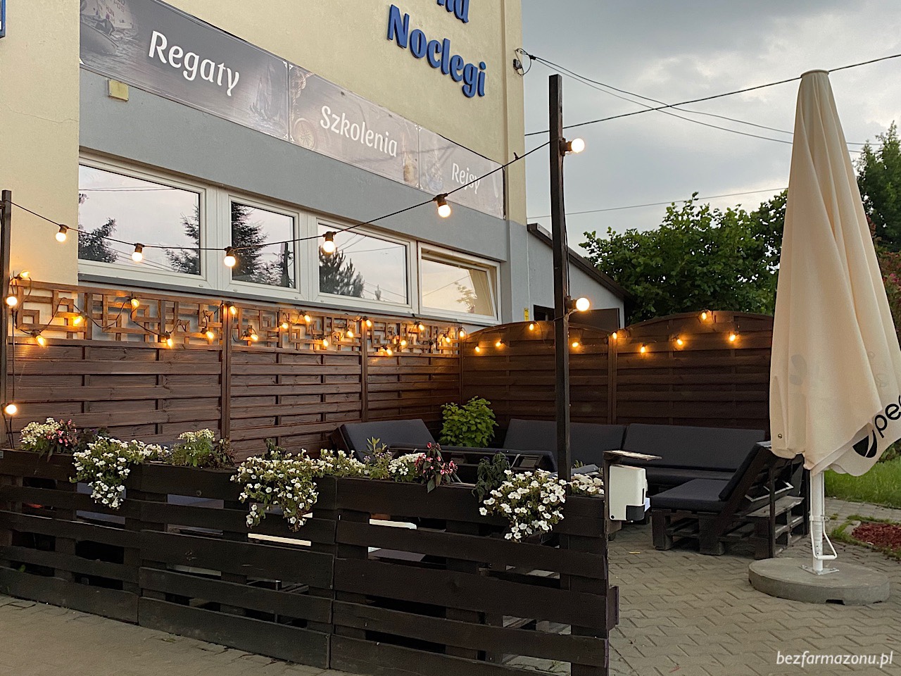 W pierwszy dzień kursu w czerwcu 2021 przyszła tak potężna ulewa, że sałatkę musiałem dokończyć w środku. Zdjęcie poniżej przedstawia restaurację jeszcze sprzed nawałnicy.