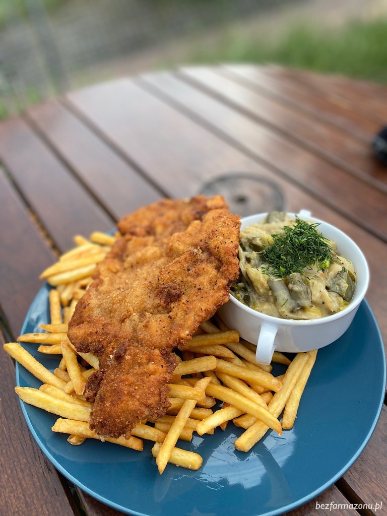 Schabowy (39 PLN) w dalszym ciągu jest ogromny, a panierka chrupie jak szalona. Nie podaje się już do niego frytek, lecz ziemniaki w mundurkach i moim zdaniem jest to zmiana na lepsze. Również mizeria pasuje mi bardziej, aniżeli tamtejsza zasmażana. Ogólnie zmiany na duży plus i danie jest bardzo godne polecenia.