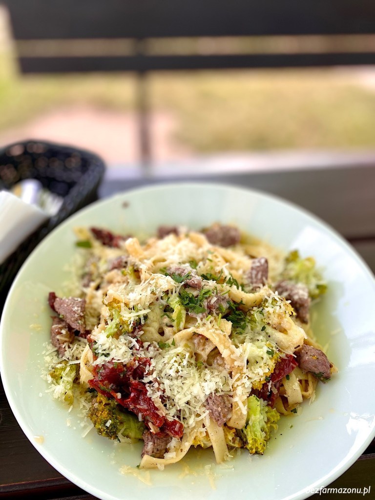 24 godziny później znów poprosiłem o tagliatelle, lecz tym razem z polędwicą wołową (29 PLN). Byłem ciekaw czy potrafią ją przyrządzić na miękko i nie gumowo. Okazało się, że wiedzą co jest pięć i wszystkie kawałki smakowały ideolo. Makaron zestawiono z brokułamy, cierpką oliwą, suszonymi pomidorami i natką pietruszki. Nie pożałowano parmezanu, a w tle dawała o sobie znać papryczka chili. Kolejne danie i następne zjedzone ze smakiem.